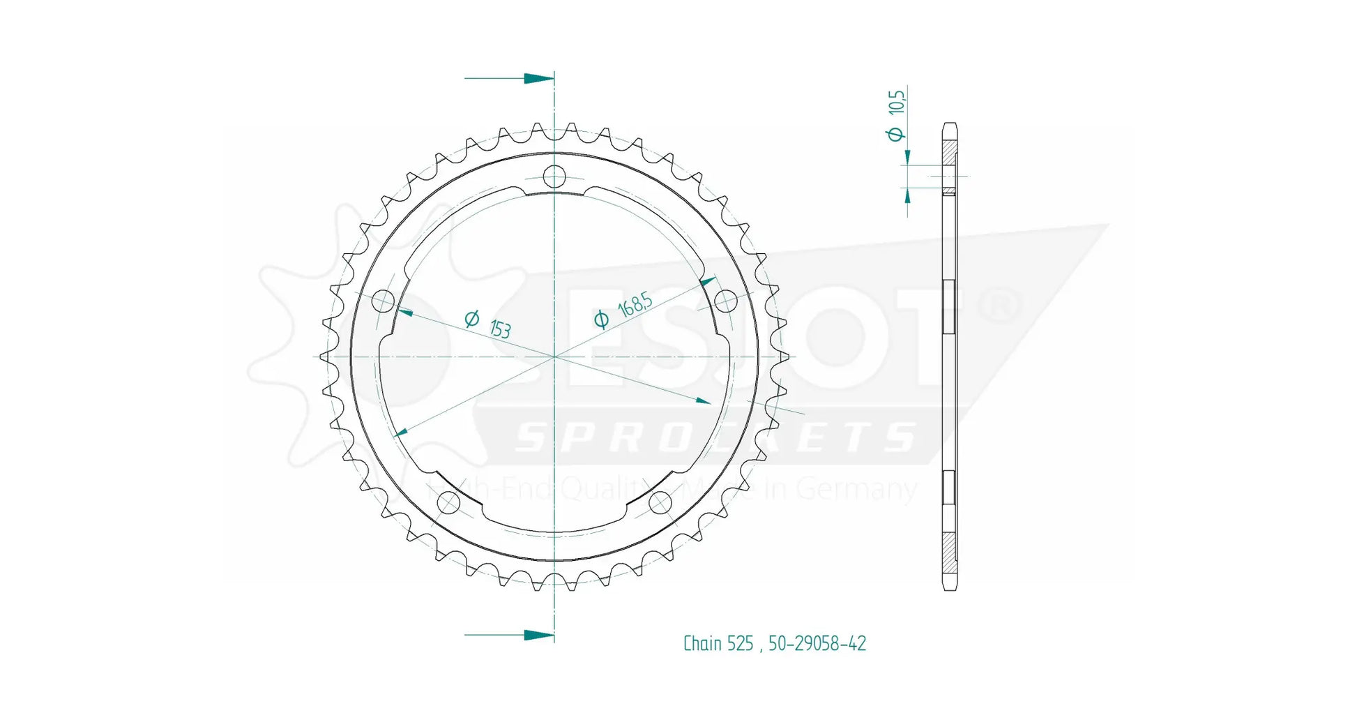 Esjot sprockets are world-renowned for their quality and precision. Constructed from high-strength QSTE460 steel and finished with a specialized surface treatment, this rear sprocket offers superior resistance to wear and corrosion. The Diamond Cut 2.0 process ensures precise toothing, resulting in optimal power transfer and reduced chain wear. With concentricity and axial run-out tolerances of less than 0.1 mm, the Esjot sprocket guarantees smooth and efficient operation. Upgrade to Esjot for unmatched performance and reliability on your motorcycle. Easy to install and built to last, this sprocket is the perfect choice for enthusiasts and professionals alike. Proudly 100% Made in Germany.