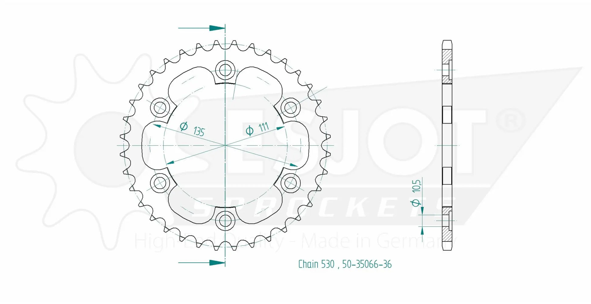 Crafted from high-strength QSTE460 steel, this Esjot 530 sprocket is designed for exceptional durability and wear resistance. The precise toothing, achieved through the advanced Diamond Cut 2.0 process, guarantees optimal power transfer and reduced chain wear. Its special surface treatment ensures superior corrosion resistance, making it ideal for all riding conditions. With concentricity and axial run-out tolerances of less than 0.1 mm, this rear sprocket provides smooth and reliable performance. Whether you are a daily commuter or a weekend track enthusiast, the Esjot 530 steel rear sprocket delivers unmatched quality and performance. Proudly 100% Made in Germany.