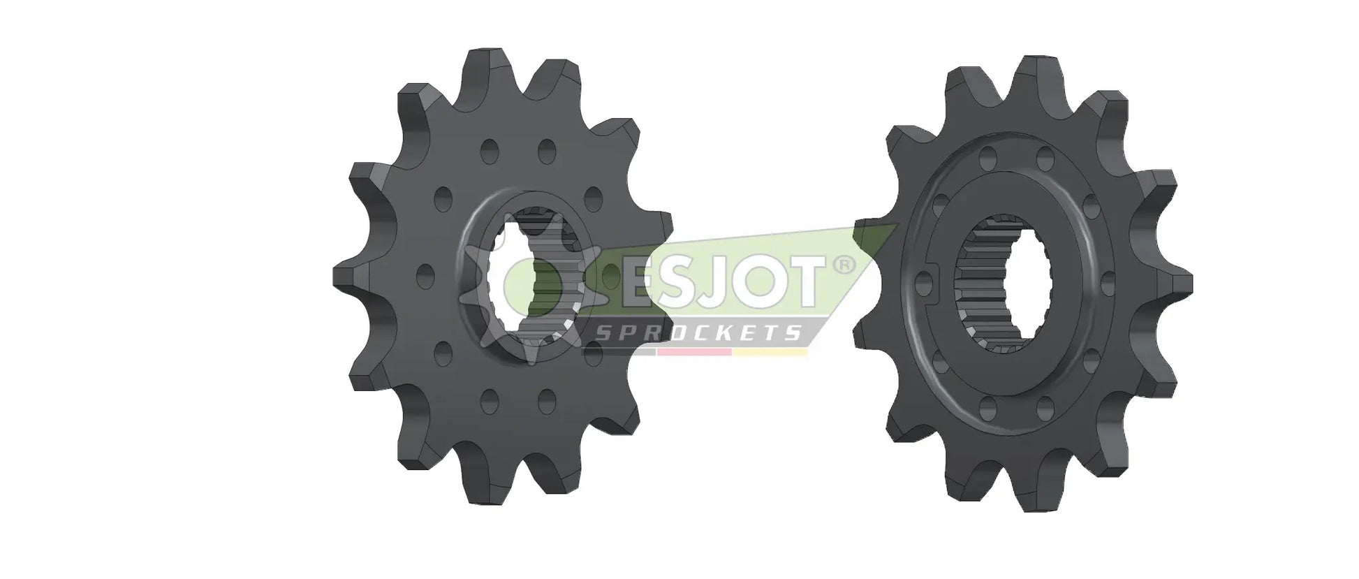 Esjot front sprockets are designed to meet the stringent requirements of OEMs, establishing them as a top-tier option worldwide. Constructed from special steel and featuring high-quality case hardening, along with meticulously crafted gearing, this sprocket delivers exceptional strength and durability, perfectly suited for challenging conditions across various riding environments. Weight optimization is achieved through lightening holes and twist-in design, specifically fine-tuned for racing applications. This ensures no compromise on running performance, despite significant weight reduction. Manufactured on CNC automatic lathes and utilizing state-of-the-art broaching machines, the sprocket guarantees a precise fit on the drive shaft, maintaining concentricity and axial run-out tolerances of less than 0.1 mm. Proudly 100% Made in Germany, the Esjot Sport Sprocket 520 elevates your motorcycle's performance.