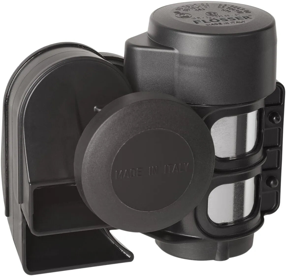 Upgrade your motorcycle's sound with the Flosser Horns and Fanfares, designed for easy installation and universal fit. These street-legal horns provide a powerful and attention-grabbing sound, ensuring you're heard on the road. Enhance your bike's safety and style with this durable and reliable upgrade.