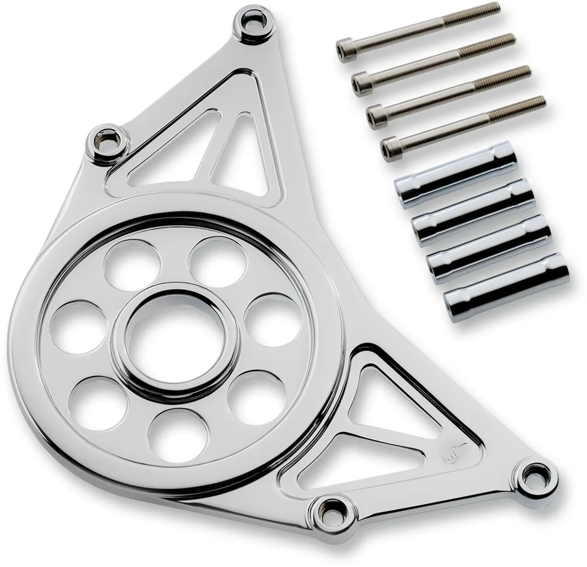 The Joker Machine Pulley Cover is CNC-machined from robust 6061 billet aluminum, ensuring exceptional strength and longevity. Its race-inspired cut-out design adds a touch of aggressive styling to your motorcycle. The chrome finish offers a brilliant shine and superior corrosion resistance. Easy to install with included mounting hardware, this pulley cover provides a seamless upgrade, enhancing both the appearance and durability of your machine. Proudly made in the U.S.A., this cover embodies quality craftsmanship and attention to detail, making it a top choice for discerning riders looking to improve their bike's aesthetics and protection. Improve your motorcycle's style and protect your pulley system with this exceptional cover.