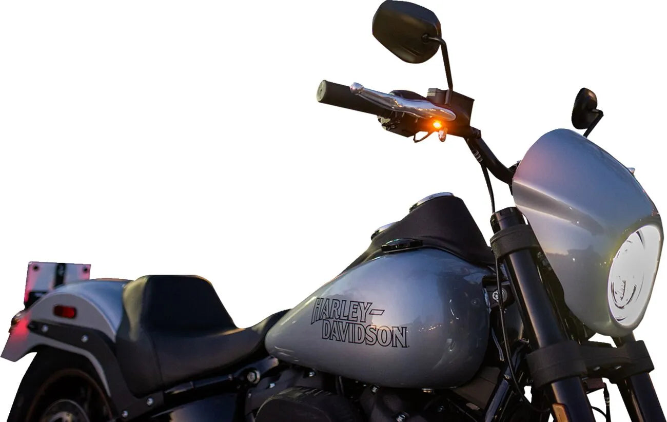 Upgrade your motorcycle's lighting with the Kodlin Elypse LED 2-1 Front Turn Signals. These signals offer a sleek design and superior functionality, providing both a white running light and a high-contrast amber turn signal for enhanced visibility and safety.