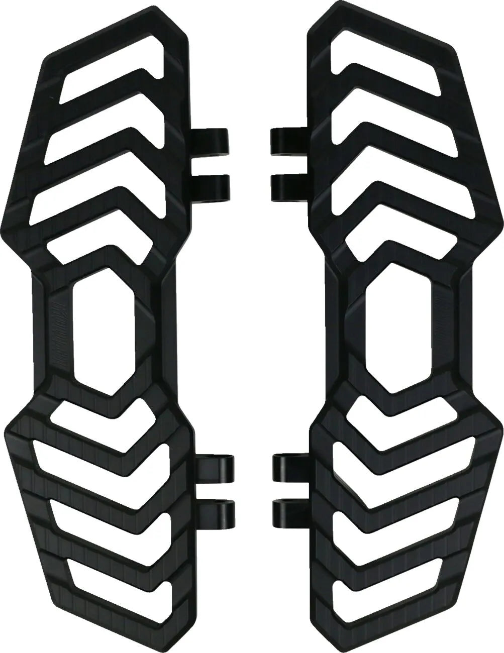Upgrade your motorcycle with these Kodlin USA Black Anodized Driver Floorboards. These floorboards offer enhanced foot traction and a sleek, custom look.