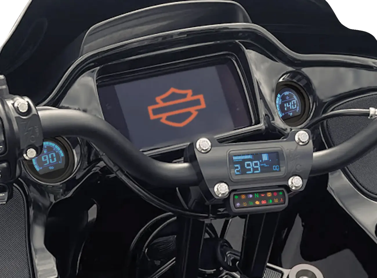 - Monitors vital readings: engine temperature, battery voltage, tire pressure, and gear indicator.