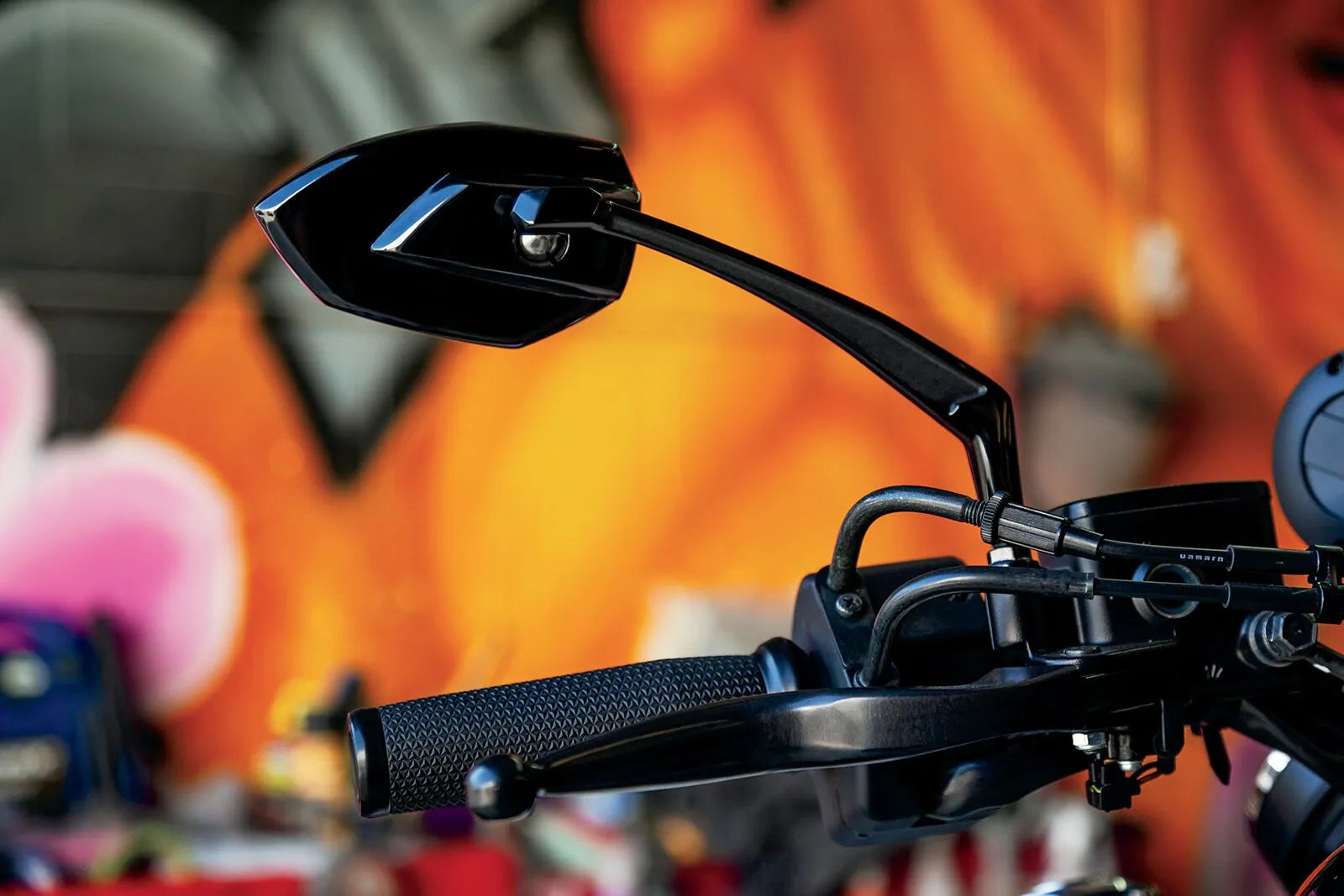 The Kuryakyn Phantom Mirrors feature an aggressive, angular design that adds a custom touch to any motorcycle. Constructed from premium forged aluminum with a black anodized finish, these mirrors are as durable as they are stylish. The convex mirror glass significantly enhances your field of vision, providing a broader view of the road behind you. The machined stainless steel ball and nylon socket allow for smooth, secure, and precise positioning, ensuring the mirrors stay exactly where you need them. These side view mirrors are designed for easy installation and are compatible with OEM or Kuryakyn grips. Whether you're a Harley enthusiast or riding a multi-fit application, these mirrors offer a perfect blend of form and function, enhancing both the aesthetics and safety of your ride.
