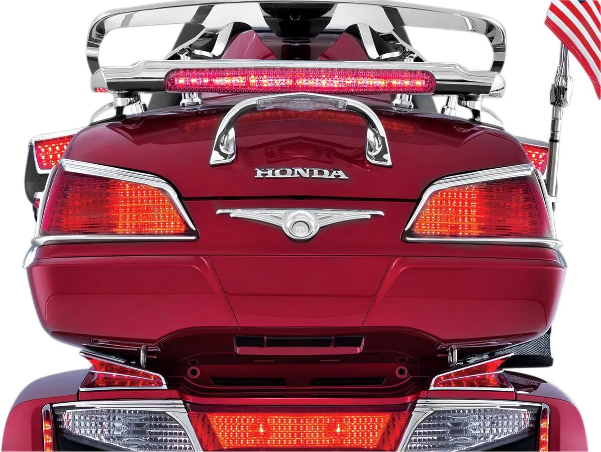 - Adds a stylish chrome accent to your motorcycle trunk.