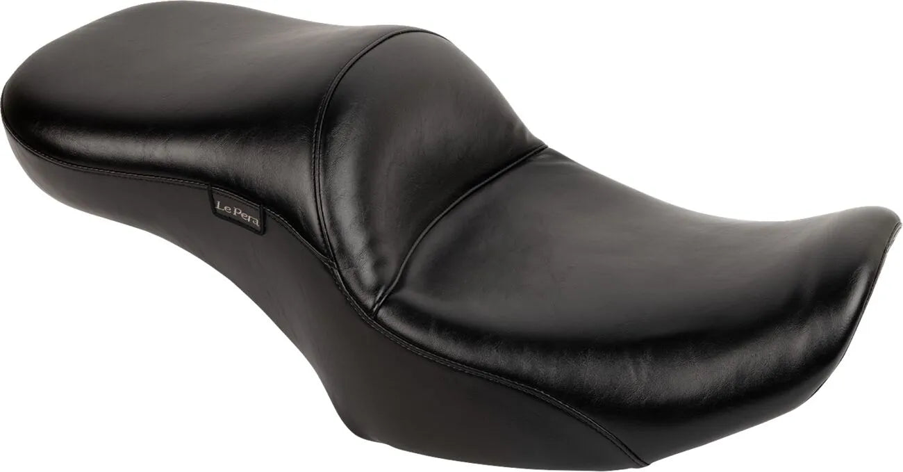 The Le Pera Maverick Seat is meticulously crafted to offer a comfortable riding experience without sacrificing the sleek, custom appearance you desire. Its special contours are engineered to provide excellent support, allowing for unrestricted movement and control. The seat features a molded one-piece foam foundation, ensuring lasting comfort and shape retention. Wrapped in premium-grade black vinyl and mounted on a durable 16-gauge powder-coated steel base plate, this seat is built to withstand the rigors of the road. The carpeted seat bottom protects your fender, adding an extra layer of care. Proudly made in the USA, the Le Pera Maverick Seat delivers quality, style, and performance in one exceptional package.