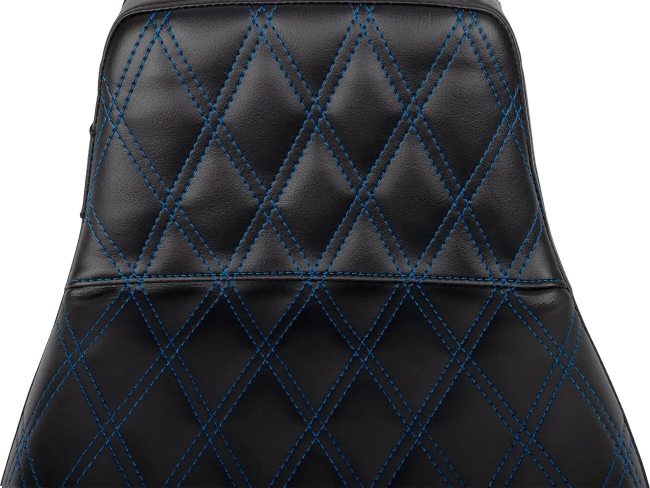 Experience the road like never before with the Le Pera Tailwhip Daddy Long Legs Seat. The rider seating area is strategically moved back 2" compared to the standard Tailwhip, providing crucial extra legroom for taller riders or those who simply prefer a more relaxed riding position. The seat features molded Marathon foam, ensuring maximum comfort even on long rides. The durable black custom Biker Tec cover not only looks great but also stands up to the rigors of the road. A highly detailed powder-coated steel carpeted base adds to the seat's overall quality and durability. The 16-gauge powder-coated steel baseplate provides a solid foundation, while the carpeted seat bottom protects your motorcycle's finish. Proudly made in the USA, this seat is a testament to Le Pera's commitment to quality and craftsmanship. With 6" of back support and an 11-1/2" wide seating area, you'll enjoy optimal comfort and support mile after mile. The double diamond stitching adds a unique and stylish touch. Upgrade your ride with the Le Pera Tailwhip Daddy Long Legs Seat and experience the difference.
