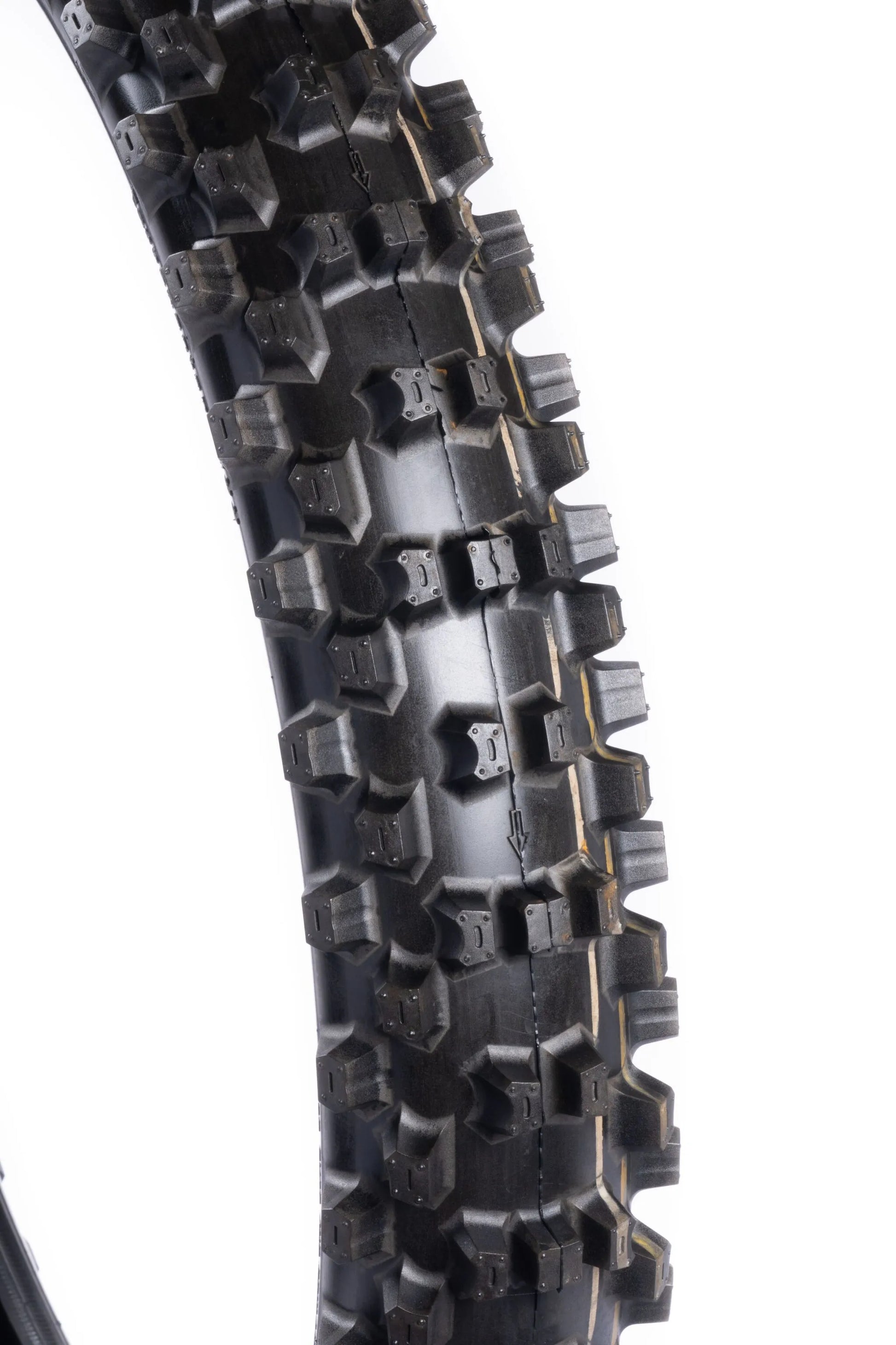 - Reinforced tread blocks on A, B, and C blocks deliver compliant drive and cornering in the loosest conditions.