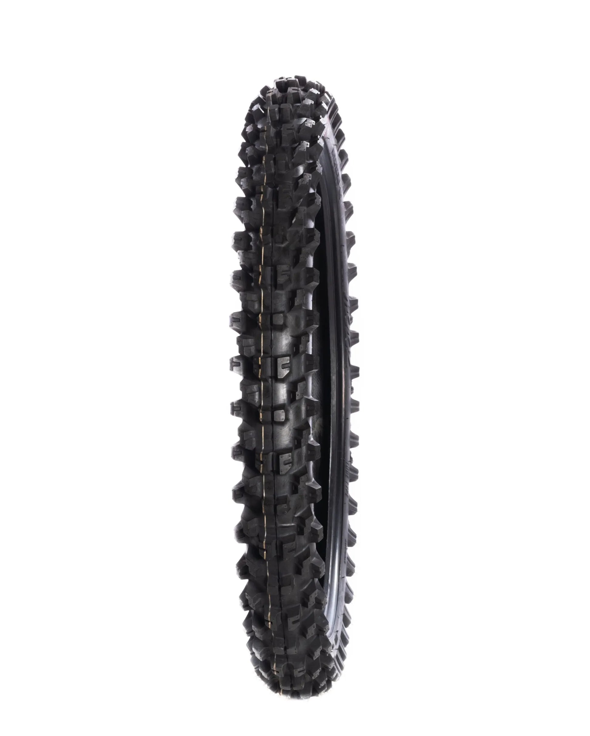 The Motoz Terrapactor S/T front tire is engineered with a lightweight carcass and a high-quality hybrid natural/synthetic compound. This combination ensures optimal balance between weight and strength, enhancing responsiveness and reducing rolling resistance. The tire's sidewall and footprint incorporate both rigid and flex zones, allowing for exceptional grip and stability across varied surfaces. Its aggressive tread pattern, enhanced by "Holeshot Magic", delivers unmatched traction, giving you the edge you need to conquer any off-road challenge. The 80/100-21 size is specifically designed for front fitment on off-road bikes.