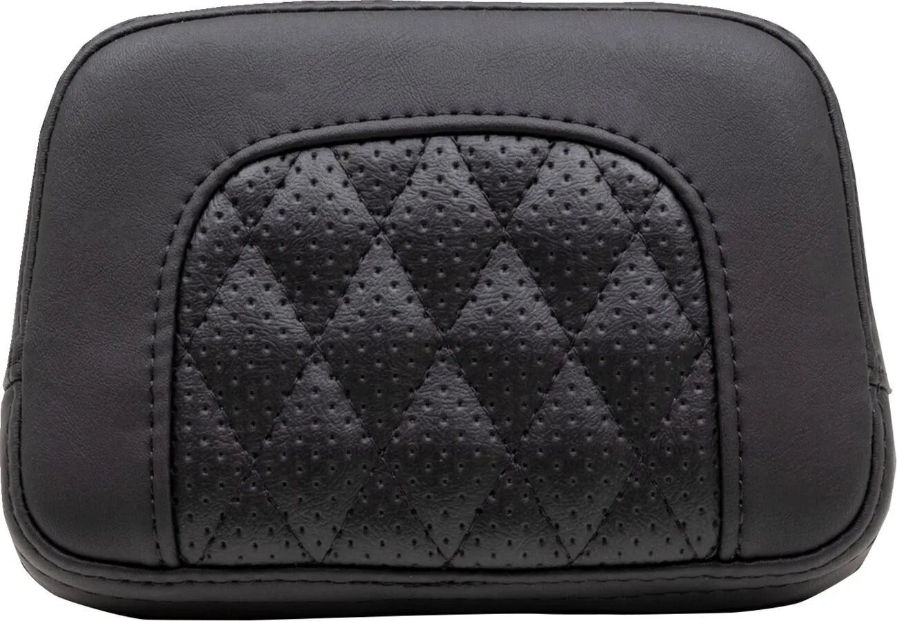 The Mustang Squareback Sissy Bar Pad is designed to add an aggressive style and upgrade comfort on your Indian Chief, specifically tailored for the new Indian Chief low-rise bar. The bucketed rider area offers superior support while maintaining an aggressive aesthetic, featuring diamond-stitched perforated center panels. Each pad is hand-sewn with a classic single diamond stitching pattern using marine-grade expanded vinyl. Mustang's proprietary controlled-density foam formula ensures that no break-in period is needed, retaining its shape and support for years to come. A marine-grade fiberglass baseplate provides long-lasting durability and support, complemented by polyurethane bumpers that absorb vibration for a smoother ride. Upgrade your motorcycle with this premium sissy bar pad and experience the difference in both style and comfort.
