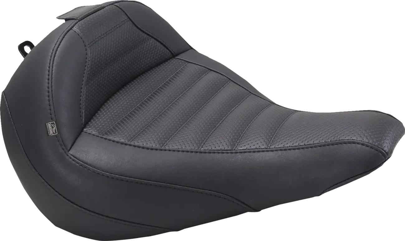 The Mustang Touring Solo Seat enhances your riding experience with its thoughtful design and premium materials. At 15" wide, this seat is 2.5" wider than the stock seat, offering a more comfortable ride. Its deep bucket design promotes ideal posture, keeping you firmly planted in a comfortable cruising position. The seat features a stylish blend of smooth and perforated vinyl, complemented by a classic double-stick tuck-n-roll design. Crafted with Mustang's proprietary controlled-density foam, this seat requires no break-in period and maintains its shape and support for years to come. The marine-grade fiberglass baseplate ensures long-lasting durability, while polyurethane bumpers absorb vibration for a smoother ride.