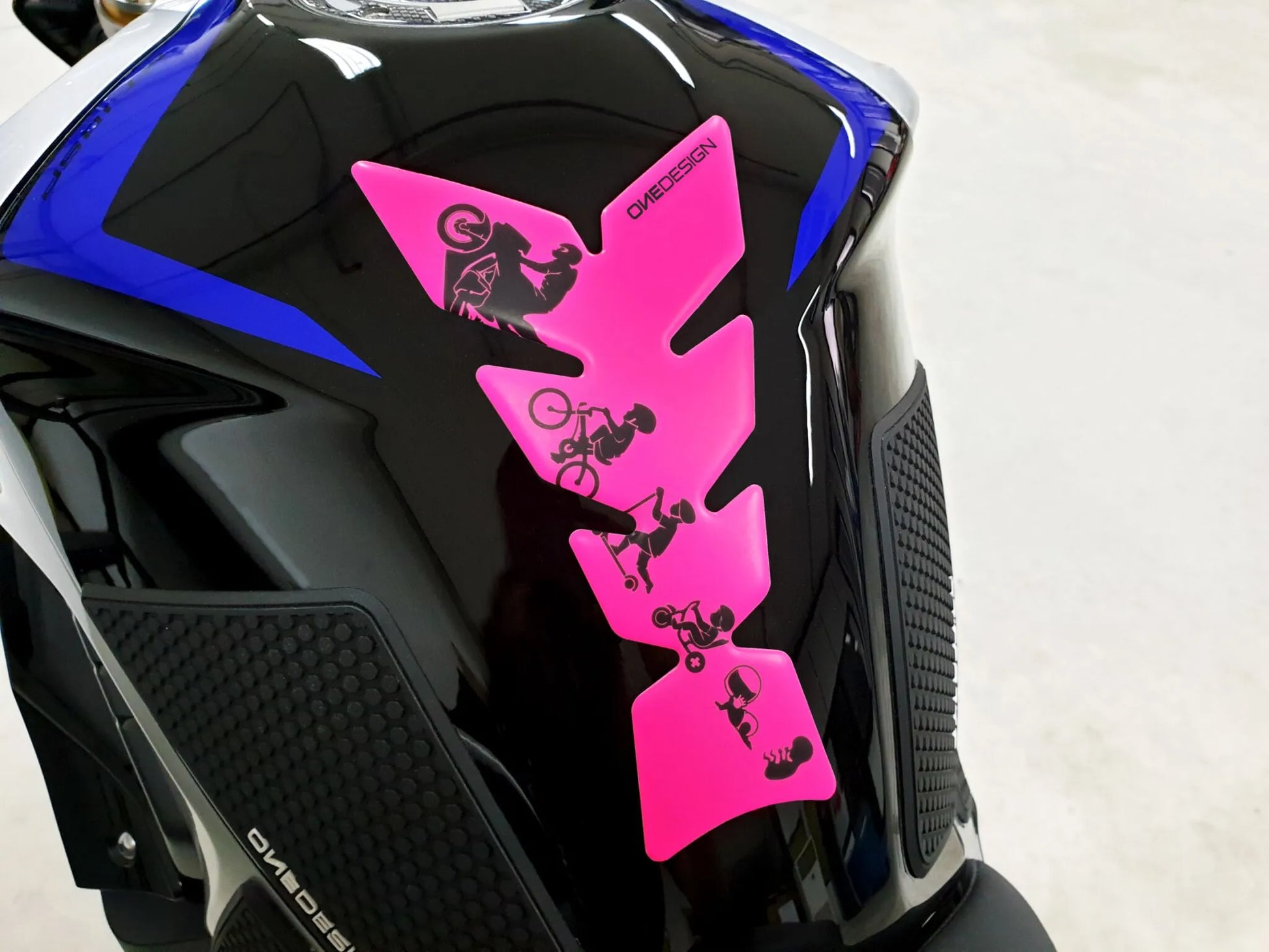 The Onedesign tank pad is crafted from high-quality resin with a soft-touch finish, providing both durability and a premium feel. Its self-adhesive backing makes installation simple and secure, offering long-lasting protection. Available in a variety of sizes and designs, this tank pad is designed to complement sport bikes, touring motorcycles, and road bikes alike. Enhance your bike's aesthetics while safeguarding its paintwork with this essential accessory. Easy to apply and offering a universal fit, it is the perfect blend of style and practicality. This tank pad helps prevent damage to your tank caused by everyday wear and tear. Protect your investment with this essential motorcycle accessory.
