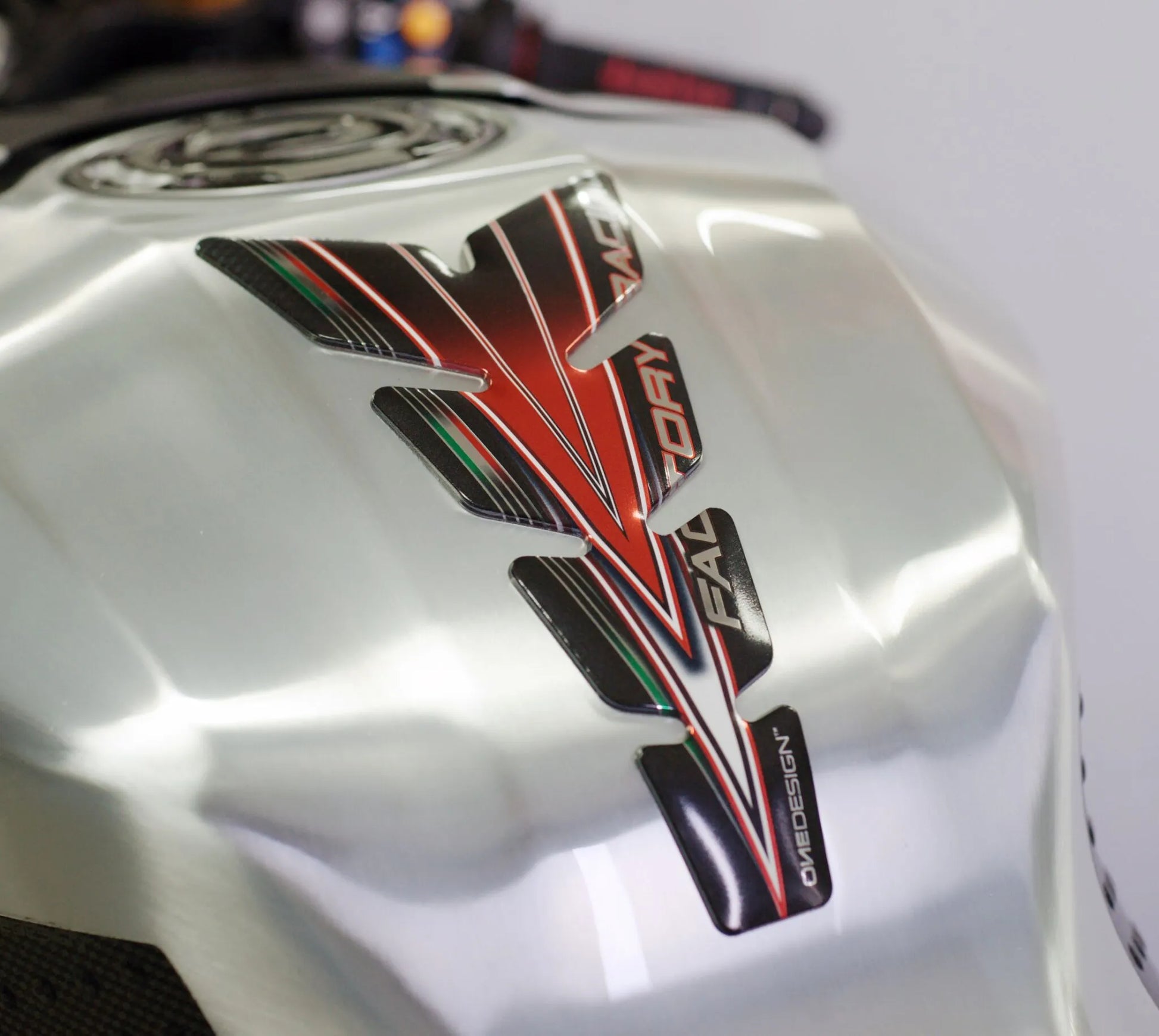 The Onedesign Tank Pad is expertly crafted from high-quality resin with a soft-touch finish, providing both durability and a premium feel. Its self-adhesive backing ensures a secure and easy installation on virtually any motorcycle fuel tank. The tank pad not only protects against scratches caused by riding gear, but it also adds a touch of personalization to your bike. The universal design is compatible with a wide range of sport, touring, and road bikes. Enjoy enhanced protection and a customized look with this essential motorcycle accessory. The multi-colored design features a blend of black and red accents, ensuring it complements any paint scheme.