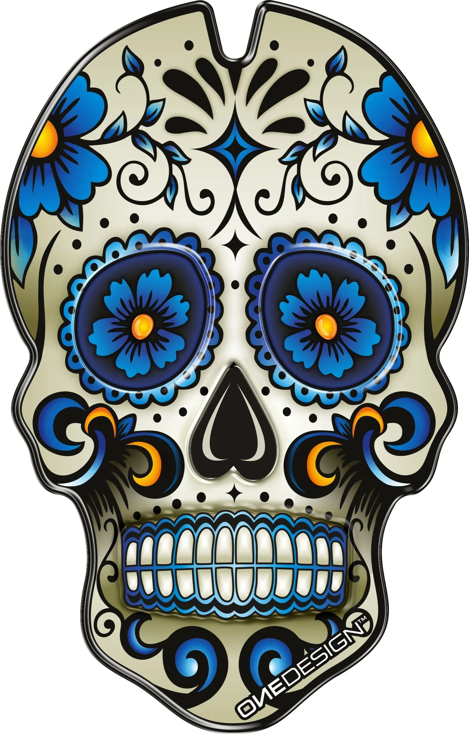 - Eye-catching Skull graphic in blue, white, and multi-color enhances your bike's aesthetics.