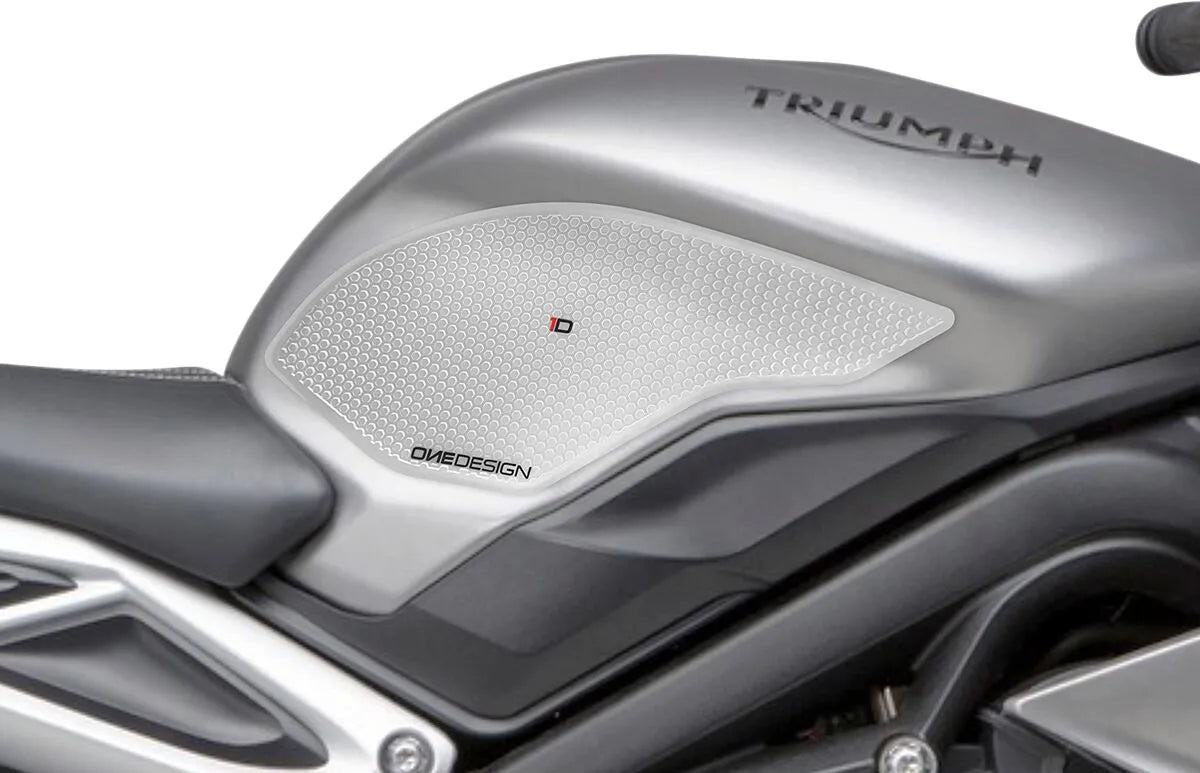 The Onedesign Tank Grip is designed to provide riders with enhanced control and stability during acceleration, braking, and cornering. The clear resin material delivers a rubber-like feel, offering excellent grip without scratching or damaging your motorcycle's tank. Easy to position and install, this tank pad set provides a secure and comfortable interface between the rider and the motorcycle, promoting better bike feel and reducing fatigue. The clear finish ensures seamless integration with any motorcycle aesthetic, preserving the original look while adding functional grip and protection. Upgrade your ride with this essential accessory for improved performance and peace of mind.