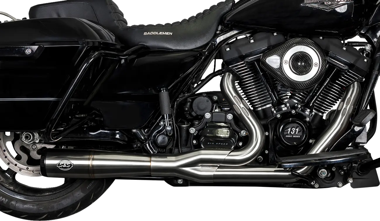 Unleash the full potential of your M-Eight engine with the S&S Cycle Diamondback 2-into-1 Exhaust System. This full stainless steel exhaust system is engineered for optimal flow, performance, and durability. Experience a significant boost in power and a deep, aggressive exhaust note.