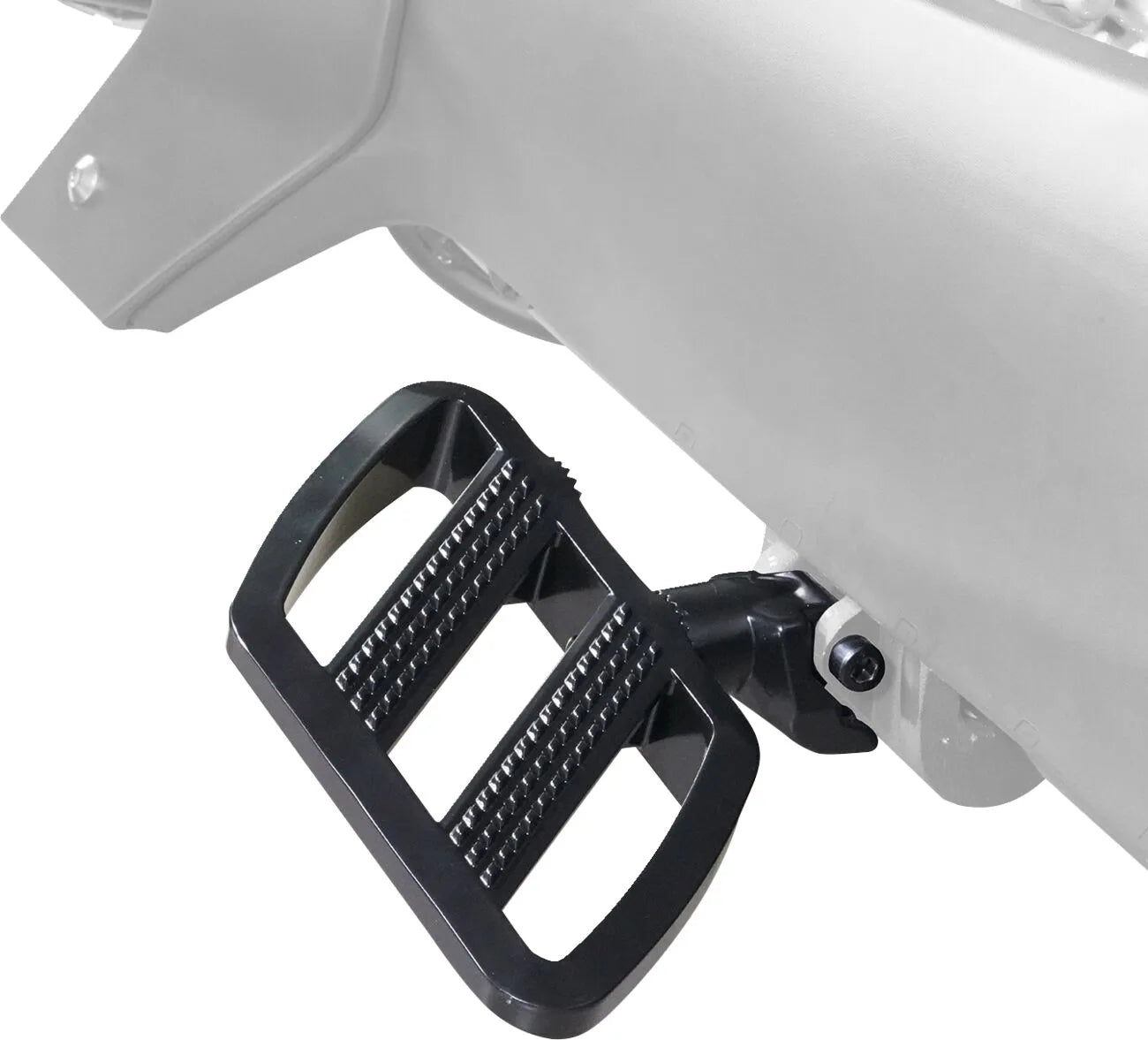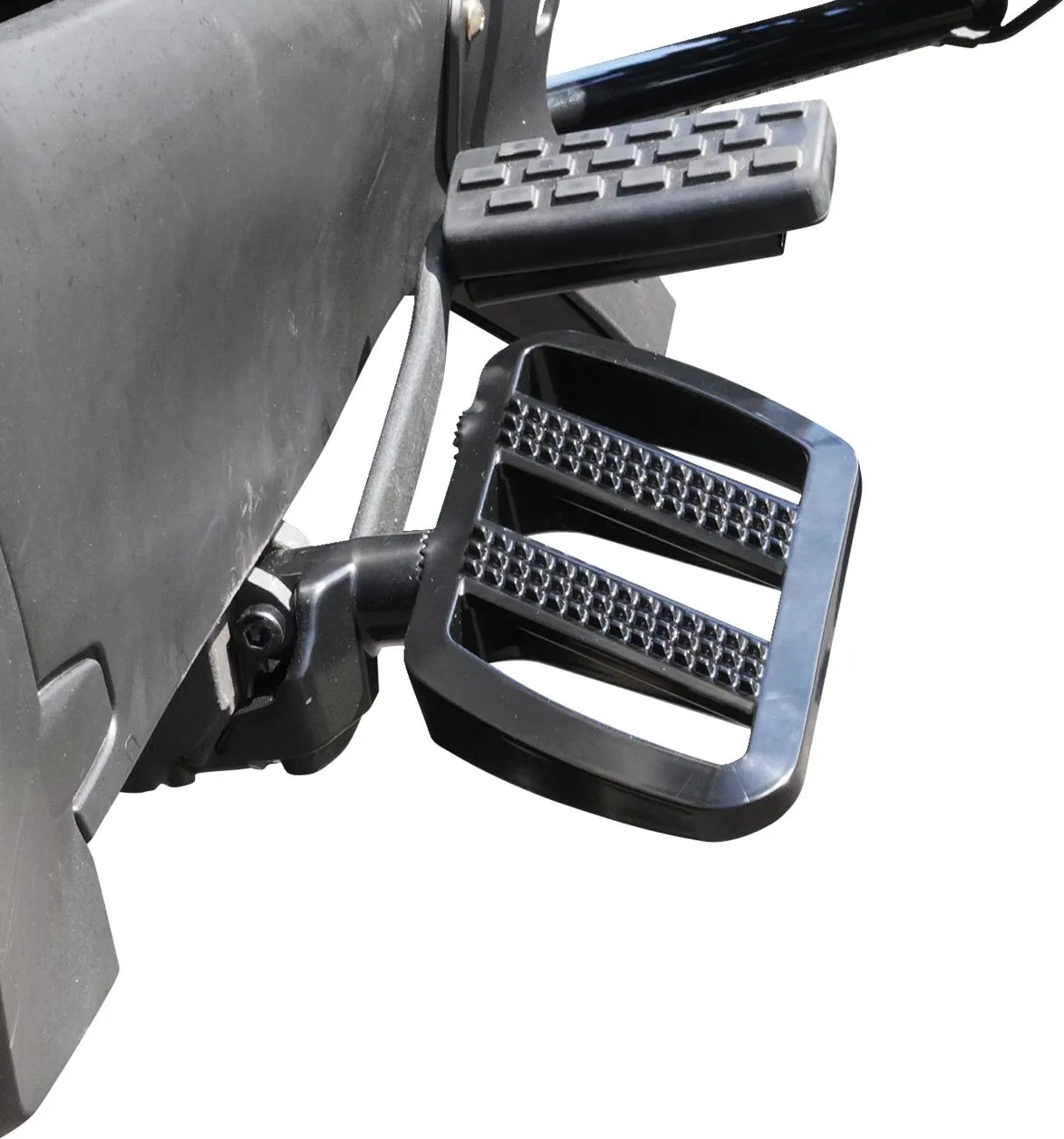 Show Chrome Combat Floorboards are meticulously engineered to provide the perfect balance of style and functionality. The dual anti-rotation mounting points and raised grips ensure enhanced traction and stability, giving you greater control and confidence on the road. Crafted from precision cast aluminum, these floorboards offer exceptional durability and a sleek, modern look. Easily use the OEM horizontal adjustment, and explore many regular adjustments to convert to an angled highway board. The black finish complements any bike.