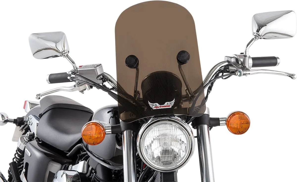 Crafted with high-quality materials, the Slipstreamer Tombstone Windshield offers durability and a classic look. The advanced quick-release system allows for effortless mounting and dismounting, making it easy to customize your ride. Designed for versatility, this windshield fits both 7/8" and 1" handlebars, ensuring broad compatibility with various motorcycle models. The dark smoke finish adds a sleek, custom touch to your bike. Upgrade your motorcycle with this iconic windshield and experience a blend of style and functionality. This windshield provides added comfort and protection for both short trips and long hauls. Made in the U.S.A.