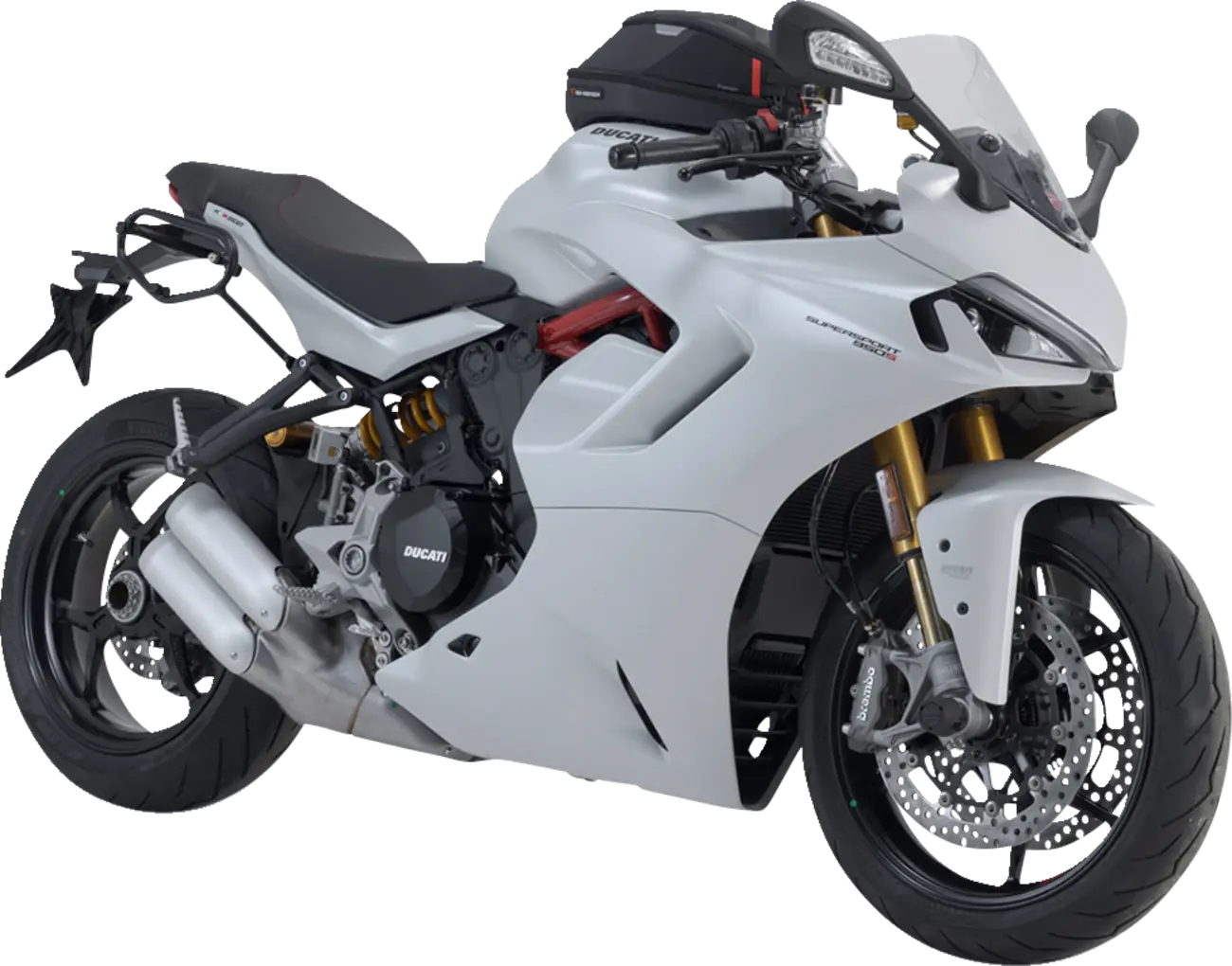 This side carrier's bike-specific design ensures optimal integration with your motorcycle's existing mounting points, making installation straightforward and secure. The quick-lock system enables swift attachment and removal of side bags, enhancing your riding experience with added convenience. Constructed from durable steel with a powder-coated finish, the SLC Side Carrier provides a robust and long-lasting platform for carrying your gear. Compatible with a variety of SW-Motech side bags, including Legend Gear LC1/LC2, URBAN ABS side cases, and SysBag with adapter plate, this carrier offers versatility and adaptability for different luggage needs. Whether you're commuting or touring, the SW-Motech SLC Side Carrier delivers a dependable and practical solution for carrying your essentials. Upgrade your motorcycle with this carrier for enhanced functionality and style. The black powder-coated finish provides a sleek look while protecting against the elements.