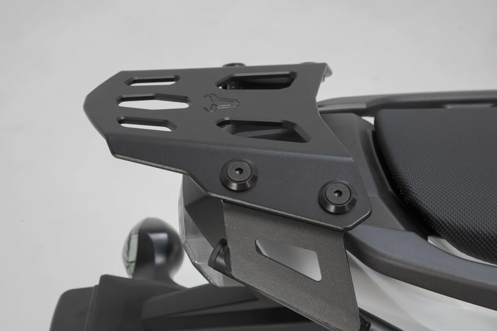 Crafted with bike-specific attachments and high-precision CNC production processes, the SW-Motech Street Rack boasts a perfect fit that complements the lines of sporty motorcycles and small street bikes. Its black powder coating provides effective corrosion protection, ensuring long-lasting performance. The 5 mm thick aluminum alloy construction offers an optimal balance of lightweight design and robust strength. Easy to assemble at the original mounting points, this luggage carrier allows for quick and hassle-free installation. For securing top cases, SysBags, or tank bags, an adapter plate (available separately) can be attached tool-free. The adapter plate's latch buckle includes a safety mechanism that securely holds TRAX top cases, SysBag 15/30 with adapter plate, and PRO or EVO tank bags in place. An optional extension is available to increase the contact surface for strapping on larger tail bags.