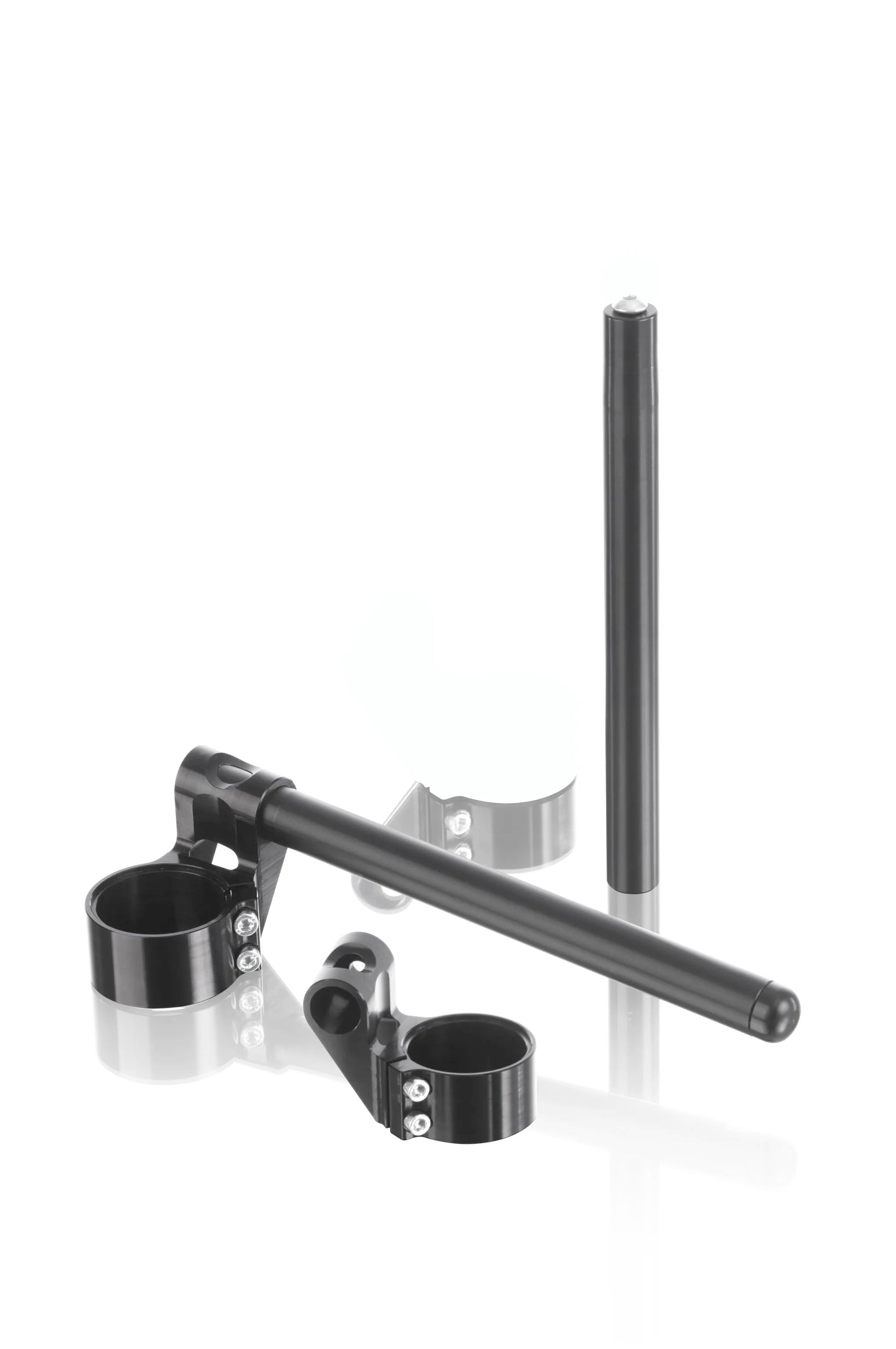 The TRW Raised Clip-Ons are precision-milled from high-strength aluminum, ensuring durability and a lightweight feel. The 20 mm rise and 5.5° steering tube angle provide a more upright and comfortable riding position, significantly reducing wrist strain. Experience improved handling and responsiveness, allowing for confident maneuvering in various riding conditions. Sold in pairs, these clip-ons offer a seamless and stylish upgrade for your motorcycle. Installation is straightforward, enhancing both the aesthetics and ergonomics of your bike. Experience a better ride with TRW clip-ons today.