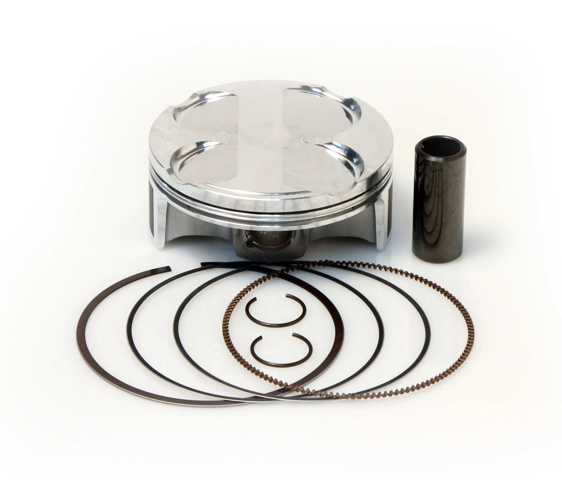 This kit includes the piston, rings, wrist pin, and circlips. Two-stroke piston rings are sold individually; four-stroke piston rings are sold as a set.