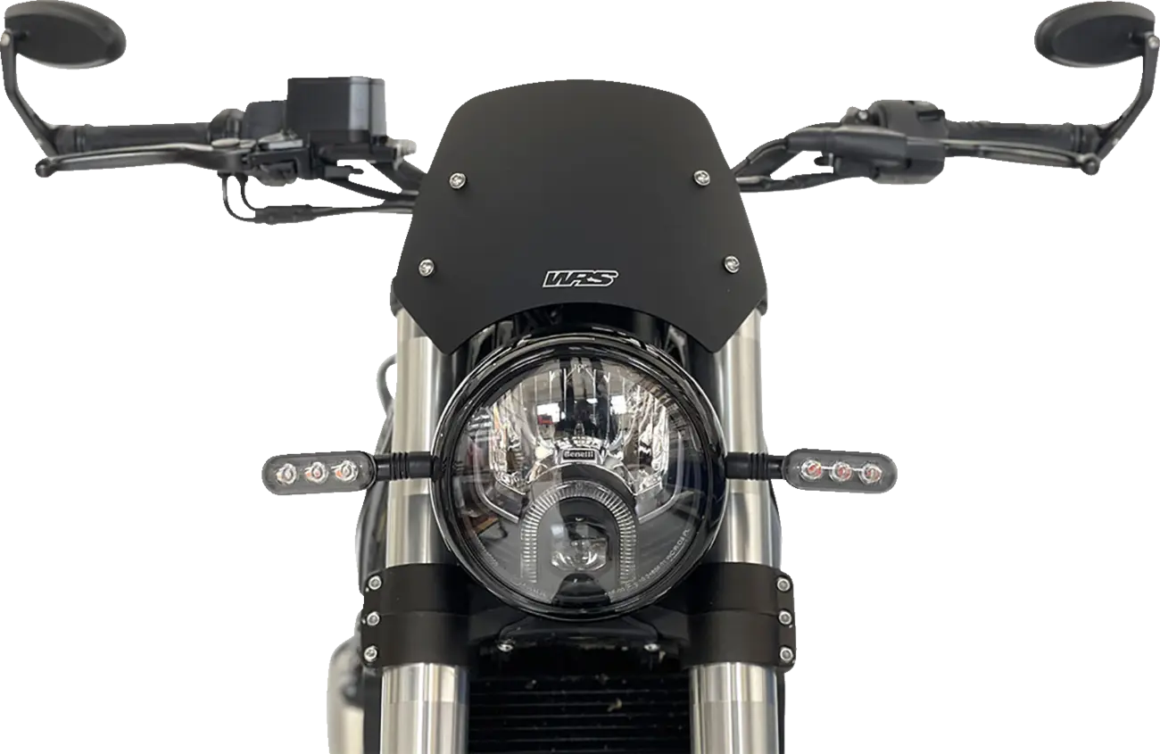 The WRS Windscreen significantly reduces wind turbulence around the shoulders and helmet, leading to a more comfortable and enjoyable ride, especially at higher speeds. Its carefully engineered design seamlessly integrates with the bike's original lines, enhancing its overall appearance with a sleek, modern touch. The matte black finish adds a touch of aggression. Installation is straightforward, ensuring a perfect fit and a secure attachment. Enjoy enhanced comfort and style on every ride with this premium naked bike windscreen.