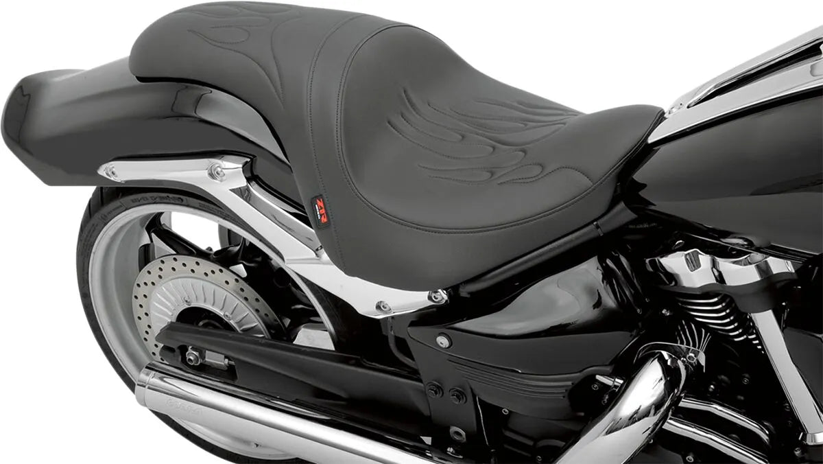 The Z1R Predator Seat is designed for riders who demand both style and performance. Its low-profile design is achieved through molded flexible urethane foam, providing a comfortable and supportive ride while lowering the rider's position for better control and a more aggressive stance. The automotive-grade vinyl covering ensures durability and a premium look. Built with a 3/16" ABS thermoformed seat base, the Predator Seat offers a solid foundation, and the carpeted bottom, complete with rubber bumpers, protects your motorcycle's paint. Proudly made in the USA, this seat combines quality craftsmanship with a design that truly stands out. Enhance your riding experience with the Z1R Predator – the ultimate upgrade for your motorcycle.