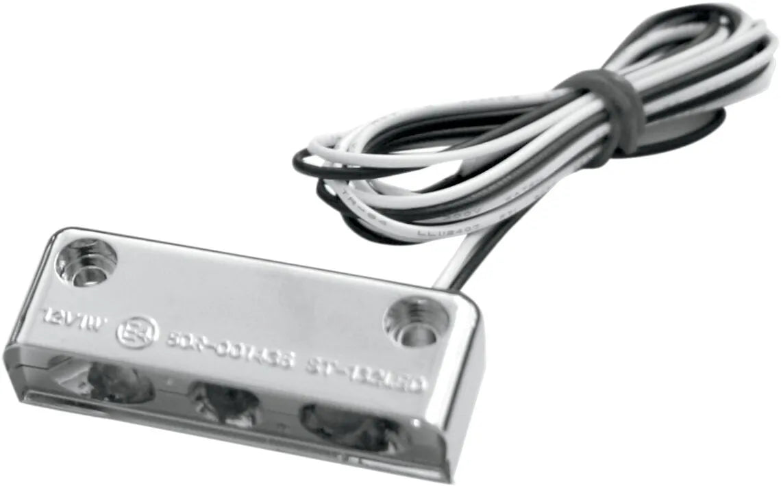 The Accutronix LED Light Strip is designed as a replacement for Accutronix license plate kits, but its versatile design makes it suitable for various custom applications. The bright LED provides excellent visibility, increasing safety on the road. The chrome housing adds a sleek, polished look that complements any motorcycle style. Manufactured in the U.S.A., this light strip guarantees superior quality and durability. Easy to install, this accent light will give your motorcycle a unique and stylish upgrade, while improving visibility. Enhance your ride with this chrome LED accent light today!