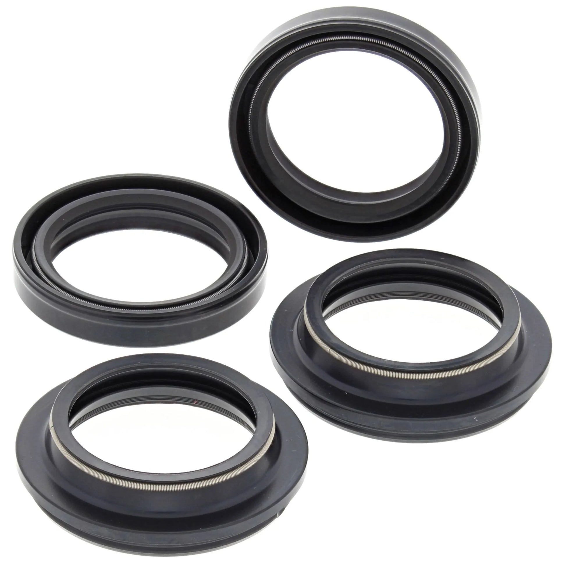 The All Balls Fork Oil and Dust Seal Kit is engineered to provide superior sealing and extended service life. The innovative seal profile equalizes pressure across each seal lip, minimizing drag and maximizing longevity. Featuring patented MAX-LIFE material, the seals exhibit a coefficient of friction up to three times lower than OEM materials, resulting in smoother fork action and reduced wear. The triple-lip seal design ensures a tight, leak-free seal, while directional ribs simplify the installation process, making it easy to get your bike back on the road quickly and confidently. Keep your motorcycle's front end in top condition with this essential maintenance upgrade. Invest in quality, performance, and durability with All Balls Racing.