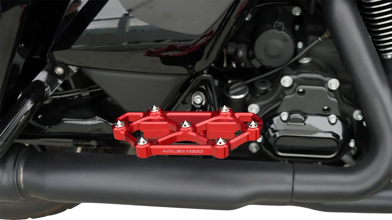 The Arlen Ness Diamond Floorboards feature an aggressive cut-through diamond pattern design, ensuring your feet stay firmly planted. Integrated titanium inserts maximize foot traction, giving you enhanced control and stability in all riding conditions. Each floorboard is CNC machined from solid billet aluminum and anodized red for a durable and stylish finish. The titanium "spikes" are also CNC machined for precision and optimal grip. Measuring 12.5" in length and 4.25" in width, these floorboards offer ample space for comfortable foot positioning. Designed for bolt-on installation, these floorboards offer easy fitment and add an aggressive look to your motorcycle.