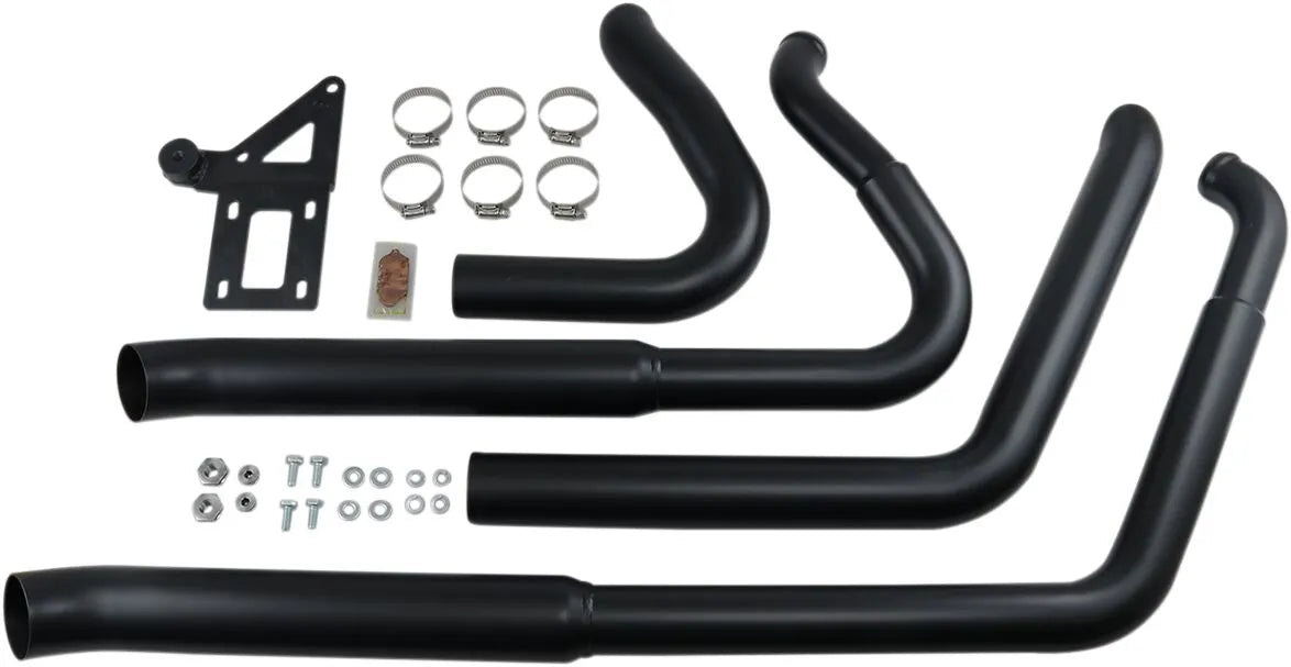 The Bassani Xhaust Pro-Street Exhaust System is designed with performance and sound in mind. The stepped headpipes transition from 1-3/4" to 2", optimizing exhaust flow and boosting low-end torque. This 2-into-2 system provides a classic look with modern performance. The round mufflers, measuring 2-1/2" (63.5 mm) in diameter, feature a turn-out end cap style for a distinctive appearance. Constructed from durable 16-gauge steel with a black finish, this system is built to last and withstand the rigors of the road. It also includes oxygen sensor ports for both 12 mm and 18 mm sensors, ensuring compatibility with a wide range of models. Installation is straightforward thanks to the included mounting bracket and hardware.