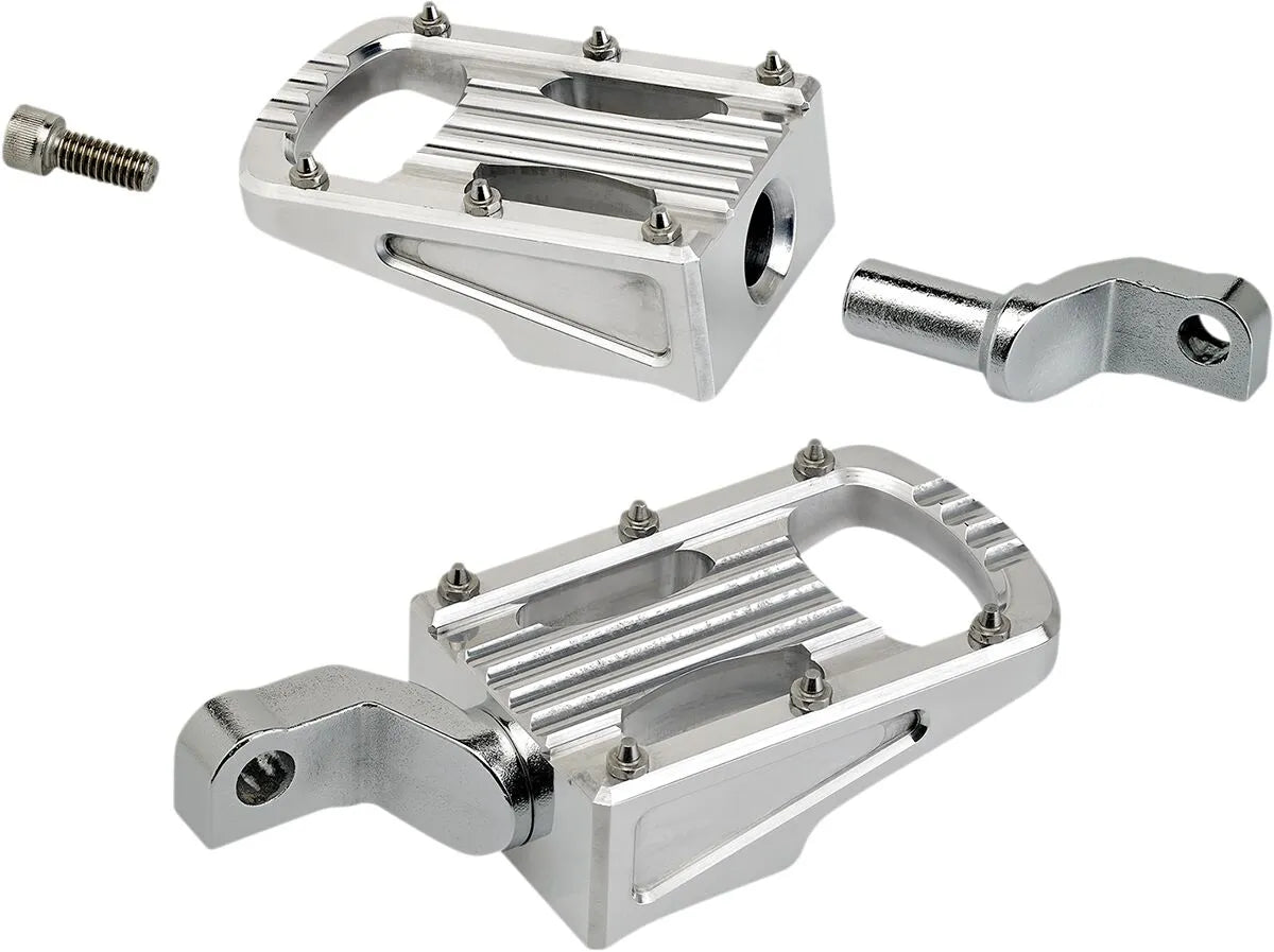 The Biltwell Punisher Foot Pegs are constructed from CNC-machined 6061-T6 billet aluminum, ensuring exceptional strength and durability. The polished silver finish adds a touch of style to your ride. Stainless steel traction pins provide excellent grip in all conditions, enhancing rider safety and control. Featuring 4130 investment-cast chromoly clevises, these foot pegs offer robust mounting and long-lasting reliability. Installation is straightforward using the included stainless steel mounting hardware, ensuring a secure and corrosion-resistant fit. Sold in pairs, these fixed foot pegs are suitable for both driver and passenger applications, offering a coordinated look and feel.
