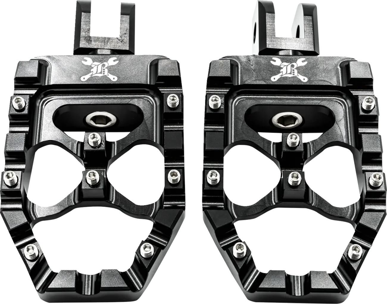 The Burly Brand MX Evolution Pegs are meticulously crafted using precision CNC machining to deliver exceptional quality and durability. Their distinctive square design draws inspiration from the iconic motocross bikes of the 1970s, updated with modern engineering for today's riders. Constructed from a lightweight, high-quality aluminum alloy, these pegs offer an optimal balance of strength and weight. The adjustable clevis system allows for personalized positioning, ensuring maximum comfort and control. Set screws provide unwavering stability, giving you a confident grip in any riding condition. Finished with the etched Burly Brand logo, these MX Evolution Pegs add a touch of classic style to your motorcycle.