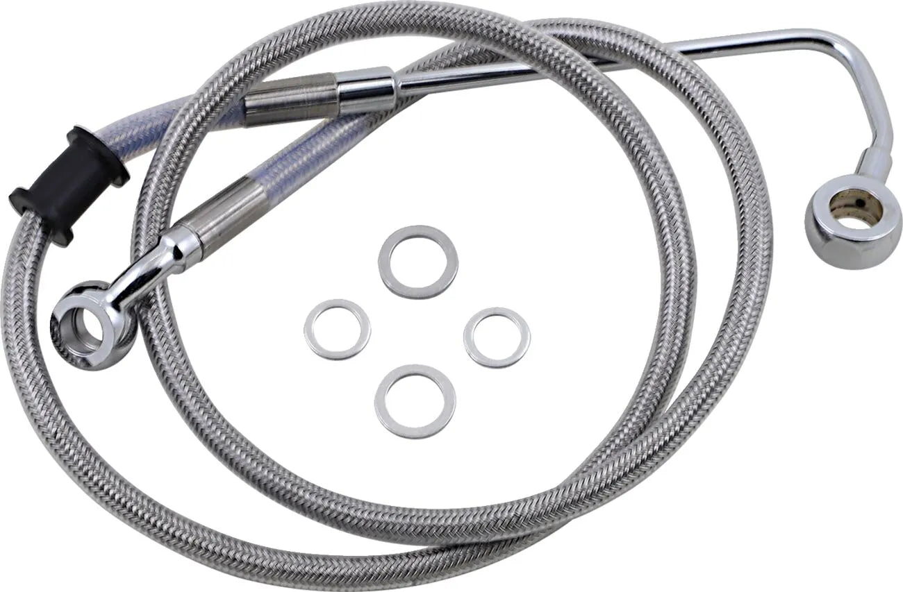 Upgrade your motorcycle's braking performance with this extended-length stainless steel brake line from Drag Specialties. Designed for enhanced durability and reliability, this brake line ensures consistent braking power and a responsive feel. Perfect for riders seeking improved control and confidence on the road.