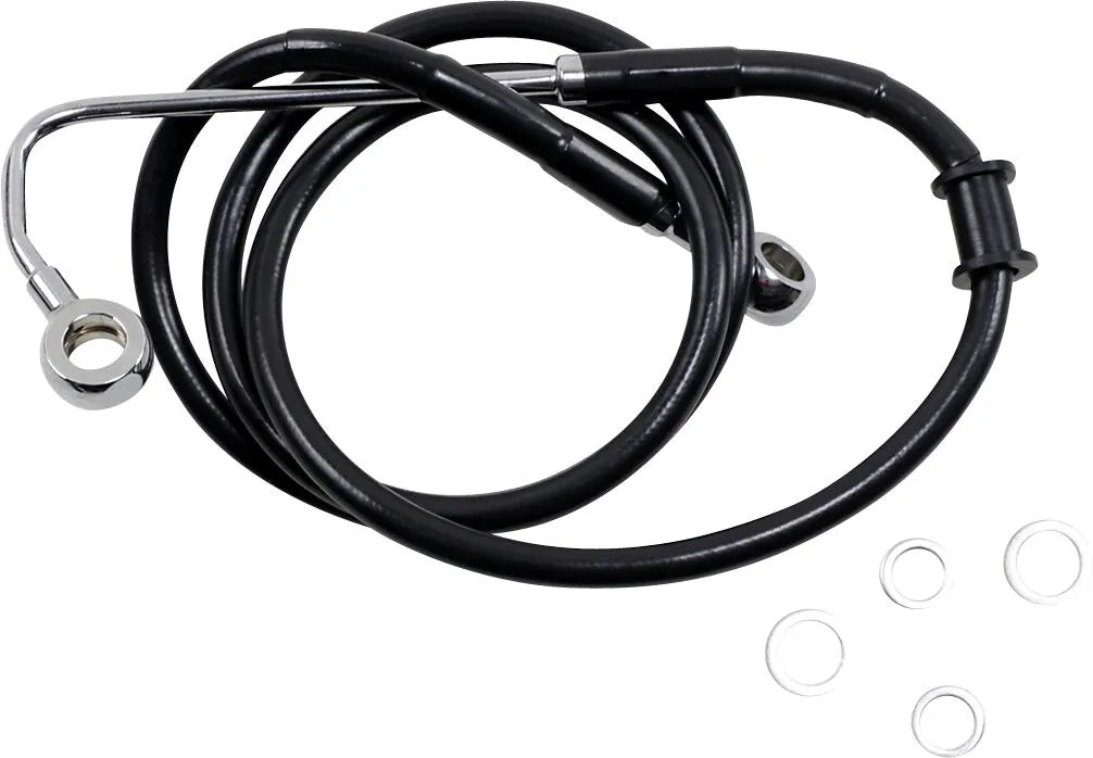 Upgrade your braking system with the Drag Specialties Extended Length Stainless Steel Brake Line. This extended brake line is designed to provide enhanced performance and a custom look for your motorcycle. Crafted from high-quality stainless steel with a durable black vinyl coating, it ensures reliability and longevity.