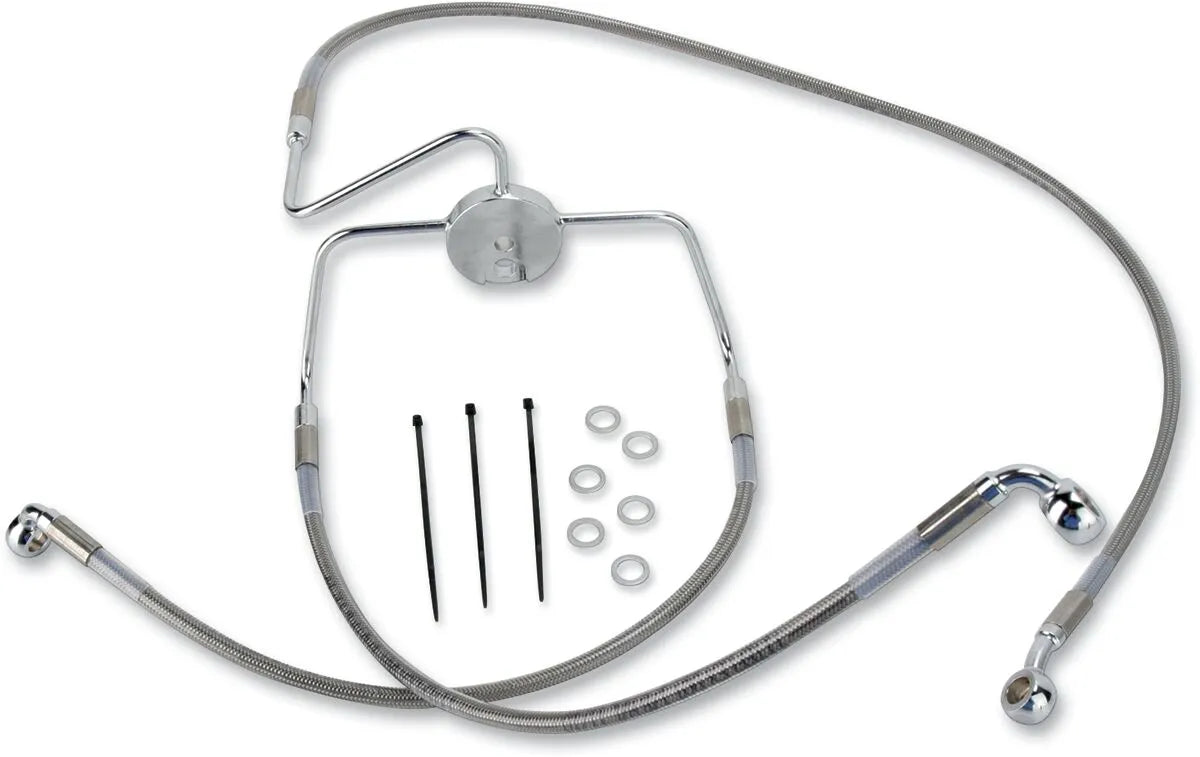 Upgrade your braking system with the Drag Specialties Extended Length Stainless Steel Brake Line Kit. These extended lines provide the extra length needed for custom handlebar setups or lifted motorcycles, ensuring optimal brake performance and a clean, professional look.