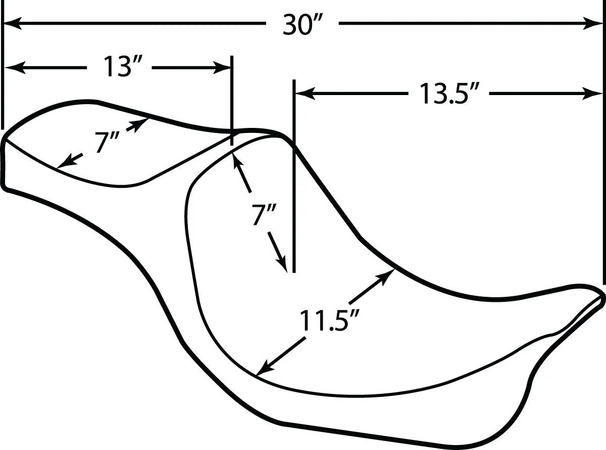 The Drag Specialties Predator III Seat combines style and functionality. Featuring an automotive-grade vinyl cover and molded polyurethane foam, this seat provides exceptional comfort for long rides. The 3/16" ABS thermoformed seat base ensures a perfect fit and includes a carpeted bottom with rubber bumpers to protect your motorcycle's paint. Its narrow front design offers improved leg clearance, enhancing your riding experience. Compatible with Drag Specialties and most Harley-Davidson sissy bars, installation is straightforward with all necessary mounting hardware included. Made in the USA, the Predator III seat guarantees quality and durability.