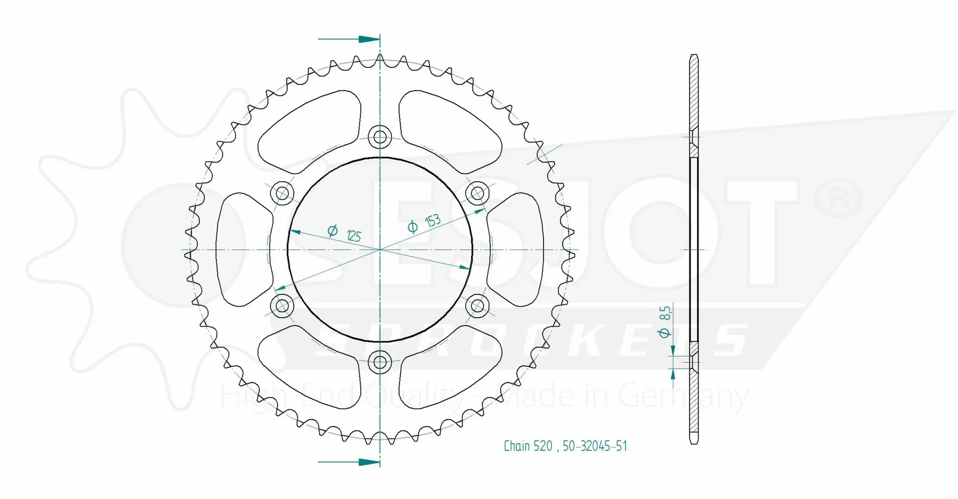 Upgrade your motorcycle's performance with the Esjot 520 Rear Sprocket. Engineered for exceptional durability and precision, this sprocket is designed to meet the rigorous demands of OEM standards, ensuring top-tier quality and reliability. Manufactured entirely in Germany, this sprocket offers unparalleled performance and longevity.