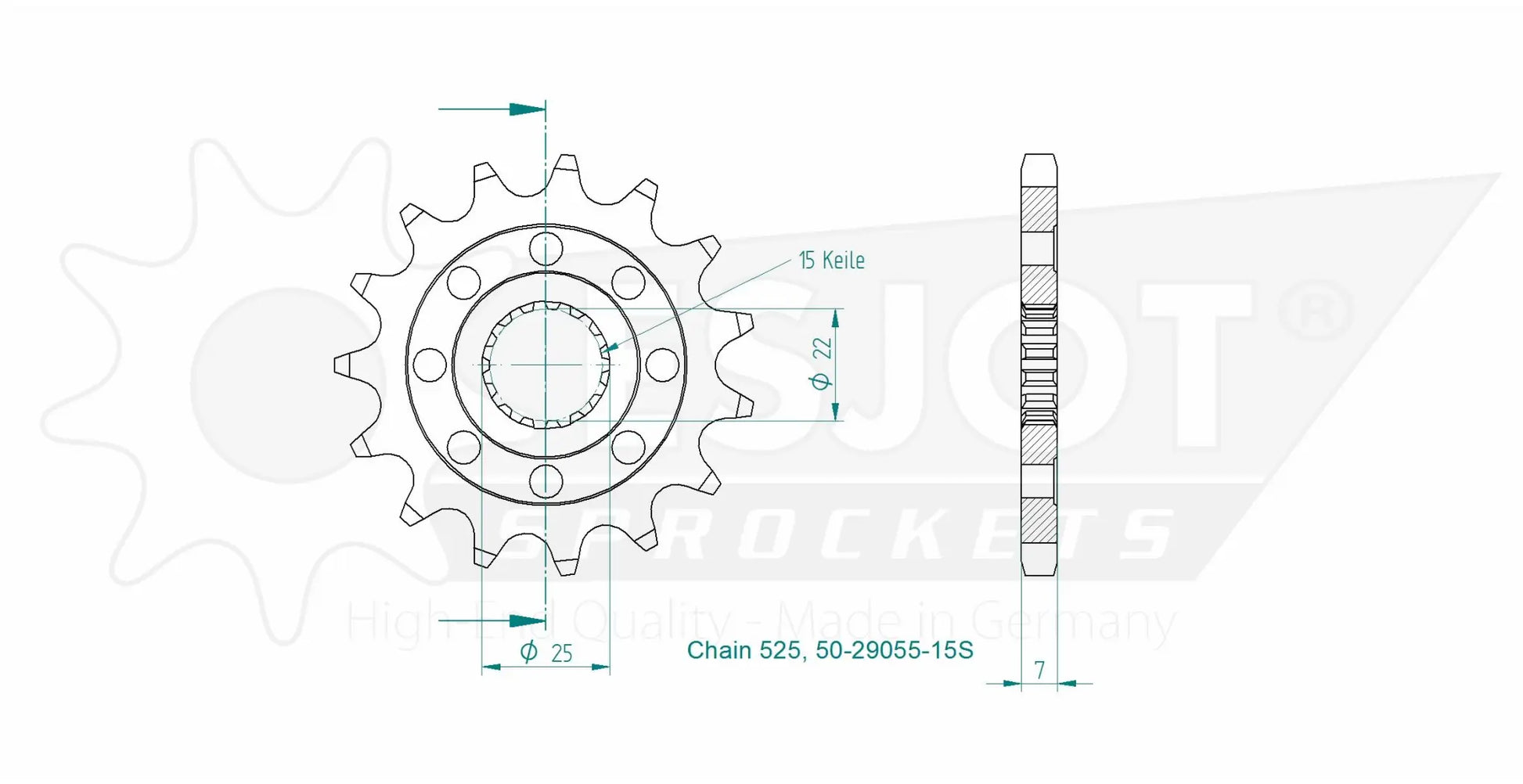 Esjot front sprockets are renowned worldwide for their quality and reliability. Manufactured from a special steel, 16MnCr5, and featuring high-quality case hardening, this 525 front sprocket ensures exceptional strength and durability. The precise gearing and CNC-machined construction guarantee a perfect fit and optimal power transfer. Weight optimization through lightening holes provides an advantage without compromising performance. Optimized for racing, this countershaft sprocket provides superior concentricity and axial run-out tolerances less than 0.1 mm, improving overall running performance. Experience the difference of a sprocket designed for peak performance and longevity.