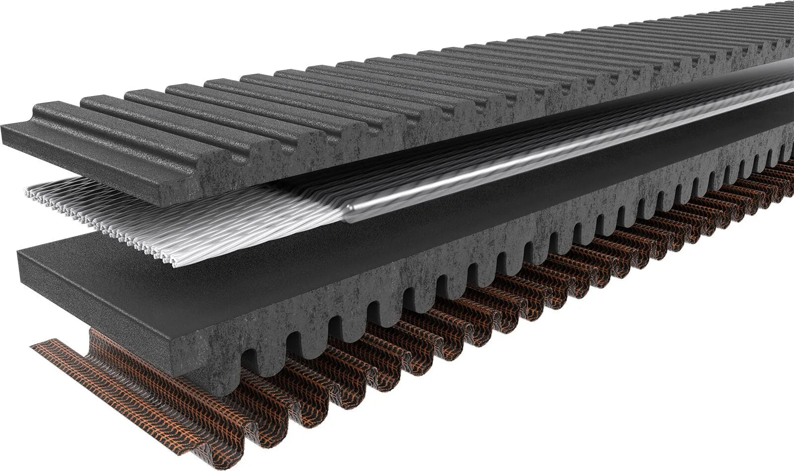 - Specially formulated adhesion gum prevents belt distortion and edge cord pullout.