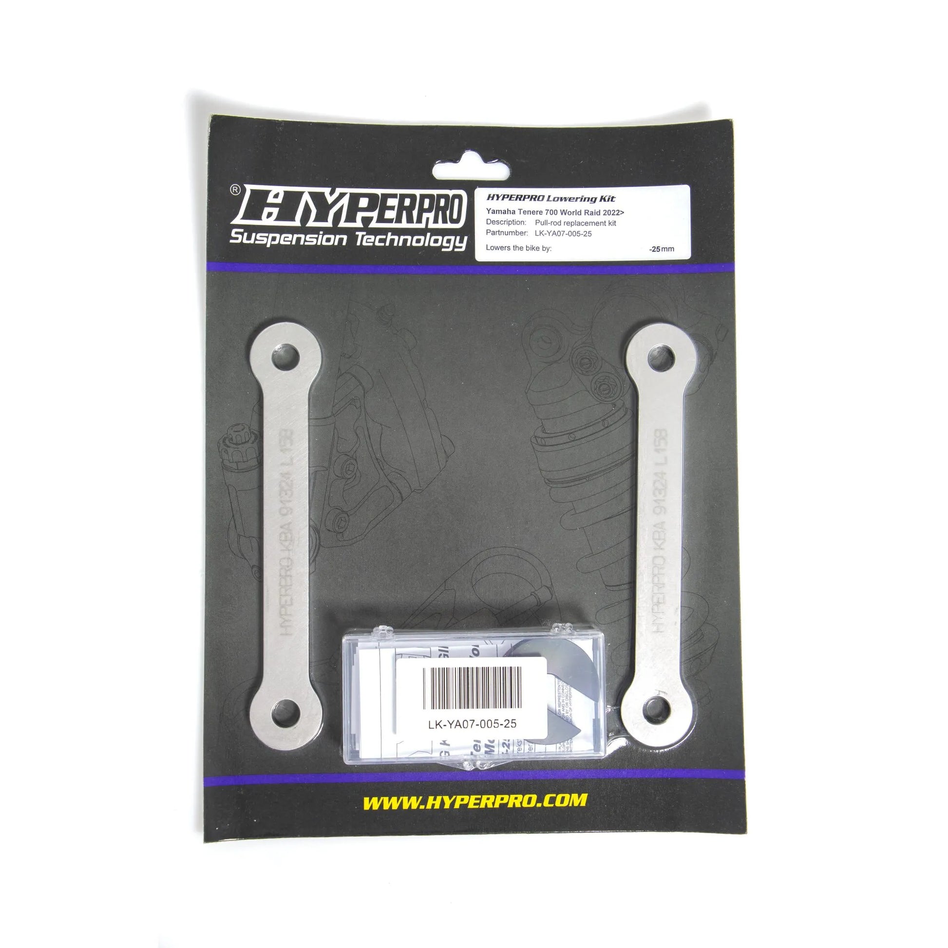 The Hyperpro 25mm Lowering Link offers a significant reduction in ride height, enhancing stability and manageability, particularly for shorter riders or those who prefer a lower center of gravity. The kit is engineered to maintain optimal suspension performance while providing a more comfortable and confident riding experience. This lowering kit includes a stroke limiter where necessary, ensuring that the suspension travel remains within safe and effective limits. Crafted from high-quality steel with a raw finish, this kit ensures durability and reliability for years to come. Installation is straightforward, making it a valuable upgrade for both enthusiasts and professional mechanics. Experience improved handling and a personalized riding position with the Hyperpro Lowering Link.