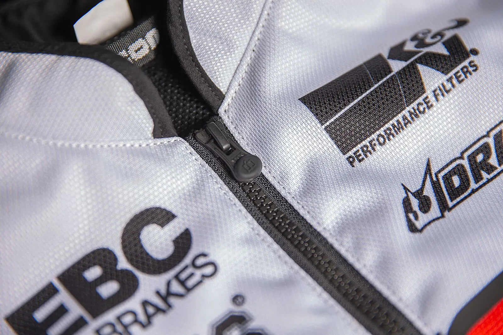 Built with a robust 300D polyester chassis and internal reinforcements, the Hooligan Ultrabolt™ Jacket offers exceptional abrasion resistance. The ICON® sport fit features a straight body and articulated arms, ensuring a comfortable and natural riding position. Large zones of laser-perforated ventilation holes maximize airflow, keeping you cool even in hot conditions. For impact protection, the jacket includes removable D30® protectors at the shoulders, elbows, and back. Quality YKK® zippers are used throughout, guaranteeing durability and smooth operation. Mesh ventilation panels further enhance breathability, while adjustable waist straps allow for a customized fit. The jacket is finished with striking sublimated graphics and zippered cuffs for added convenience.