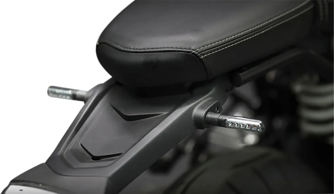 The Koso LED Marker Lights are designed for both front and rear mounting, offering versatile placement options on your motorcycle. Each light is equipped with five ultra-bright amber LEDs that shine through a clear lens, ensuring maximum visibility to other drivers. The soft-stem design enhances durability, while the M8 thread allows for easy and secure bolt-on installation. Measuring 4.17" in length, .8" in width, and .96" in height, these compact lights provide a powerful lighting solution without compromising aesthetics. These lights feature a durable steel housing and glass lens with a sleek black finish, blending seamlessly with any bike's design. These lights are ECE approved, meaning they meet stringent European safety standards for motorcycle lighting. These lights operate at 12V and consume just 1.8W, offering an energy-efficient lighting solution.