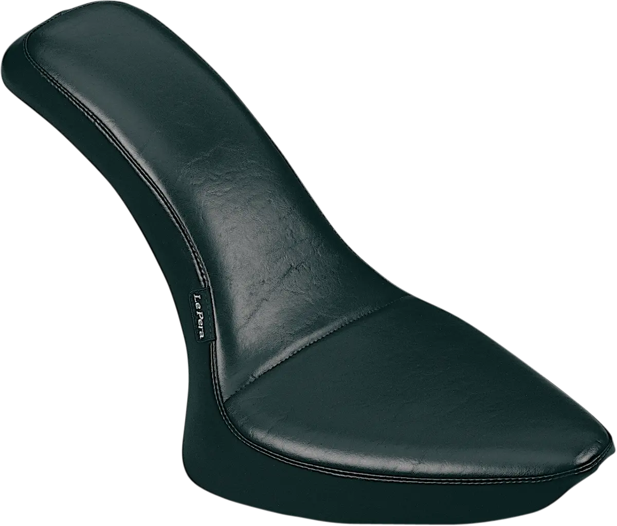 Experience a blast from the past with the Le Pera Cobra Full-Length Seat. This seat is designed to follow the flow of your motorcycle, creating a seamless and stylish appearance. The top-grade black vinyl cover ensures durability and a premium look, while the powder-coated steel base plate is carpeted to protect your fender from scratches. Proudly made in the U.S.A., this seat combines classic aesthetics with modern construction techniques for a superior riding experience. Upgrade your motorcycle with the Le Pera Cobra seat and enjoy the perfect blend of style, comfort, and American craftsmanship. Perfect for riders seeking a custom chopper look and improved comfort.