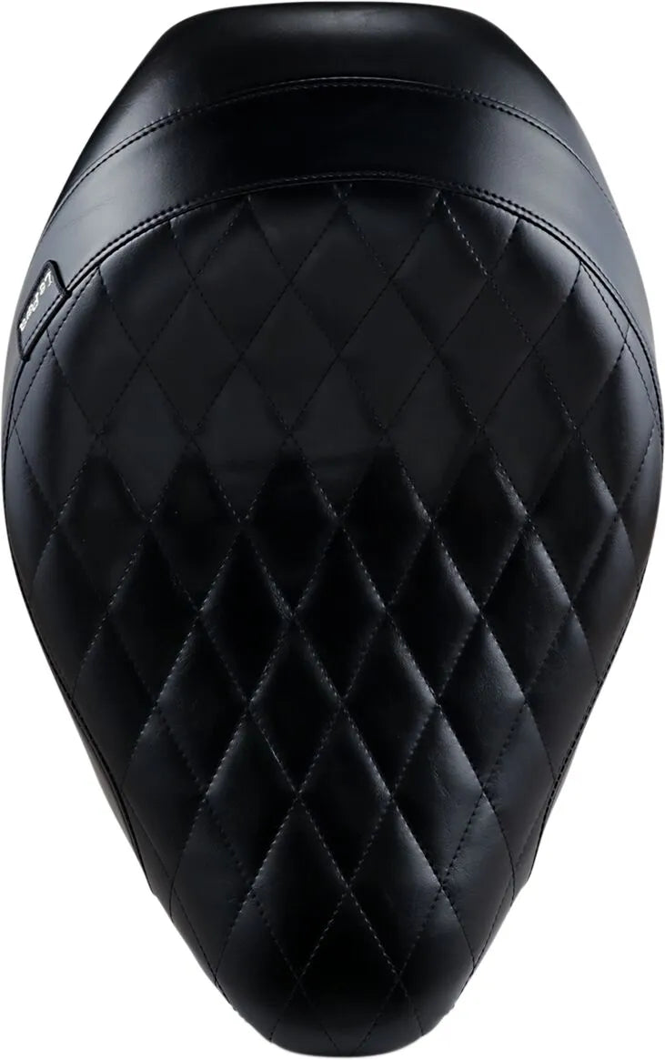 The Le Pera Sanora Sport Solo Seat is designed to complement any style Softail, providing a timeless, custom look. Crafted with premium-grade black vinyl and a distinctive diamond stitch pattern, this seat offers both durability and aesthetic appeal. The 16-gauge powder-coated steel base plate ensures a robust and reliable foundation, capable of withstanding the rigors of the road. Measuring 19" in driver seat length and 14" in width, this solo seat provides ample support and comfort for long rides. Proudly made in the U.S.A., the Sanora Sport Solo Seat reflects Le Pera's commitment to quality craftsmanship and superior materials. Enhance your motorcycle with a seat that delivers both style and performance. Installation is straightforward, making it easy to upgrade your bike's seating.
