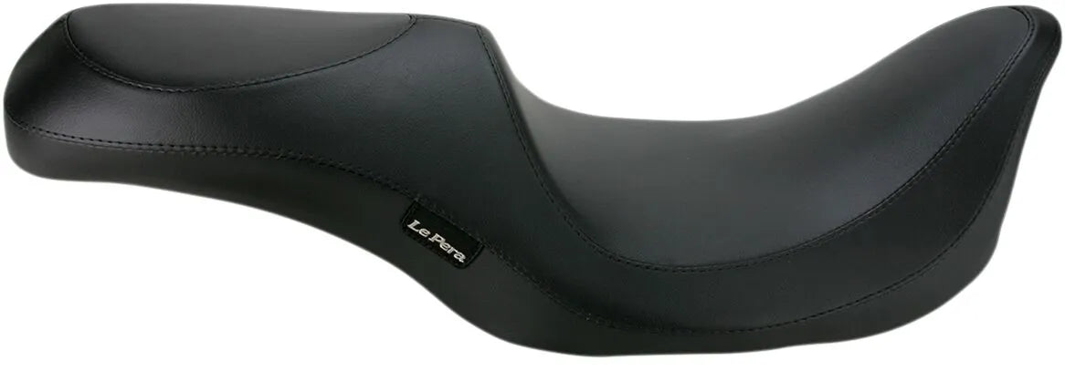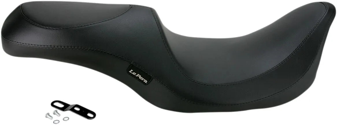 The Le Pera Villain Seat is designed for riders who demand both style and performance. Its molded one-piece foam foundation ensures optimal comfort, while the premium-grade black vinyl covering offers a durable and stylish finish. The 16-gauge powder-coated steel base plate provides a sturdy and reliable foundation, ensuring long-lasting performance. The seat bottom is carpeted to protect your fender from scratches and wear, maintaining your bike's pristine condition. With a driver seat length of 20" and width of 12.5", and a rear seat length of 13" and width of 9", this one-piece seat provides ample space for a comfortable ride. Proudly made in the U.S.A., the Le Pera Villain Seat embodies quality craftsmanship and attention to detail. Enhance your motorcycle's aesthetics and riding experience with this exceptional seat. Enjoy the superior comfort and stylish design of the Le Pera Villain, the perfect blend of form and function. Upgrade your motorcycle today and feel the difference!