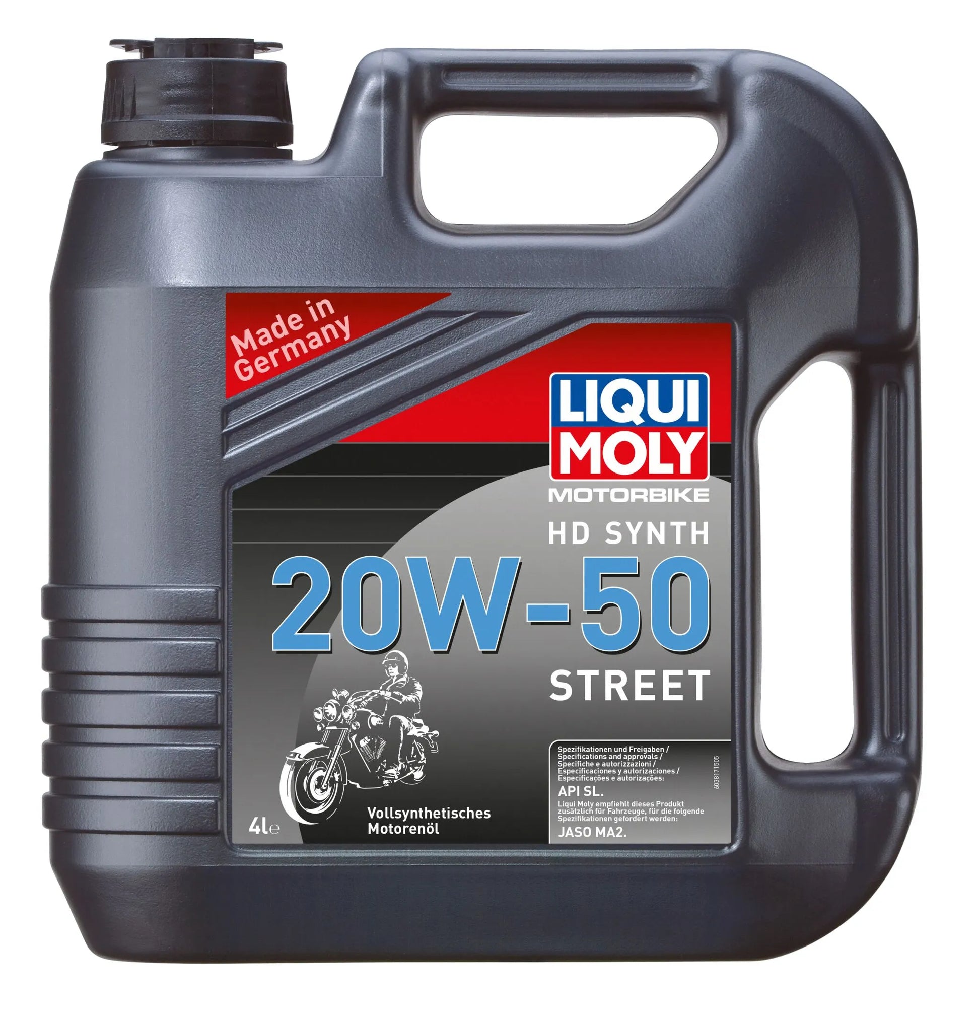 Liqui Moly 20W-50 Street Motor Oil provides superior protection and performance for your 4-stroke motorcycle engine. This fully synthetic oil is specifically formulated to meet the demands of both air-cooled and water-cooled engines, ensuring exceptional lubrication and cleanliness across all operating conditions. Trust Liqui Moly to keep your engine running smoothly and efficiently.