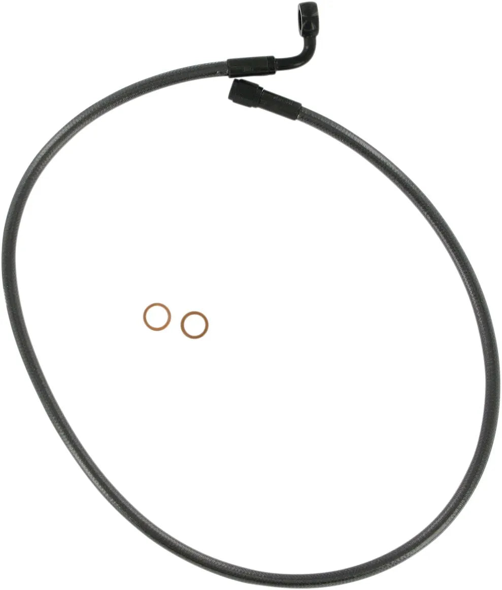 The Magnum Shielding Braided Brake Line Kit features a superior two-piece design with a direct-fit lower assembly and an alternate length upper line. All brazed manifold construction eliminates common issues such as leaks and alignment problems, while providing a clean, streamlined appearance without unattractive threaded connections. The crystal-clear outer jacket not only protects against scuffing to paint or chrome but also resists discoloration over time. With AN-3 connections, installation is straightforward and secure. Constructed from high-quality stainless steel with a black pearl finish, this brake line kit offers both durability and style. This kit is specifically designed for motorcycles without ABS.